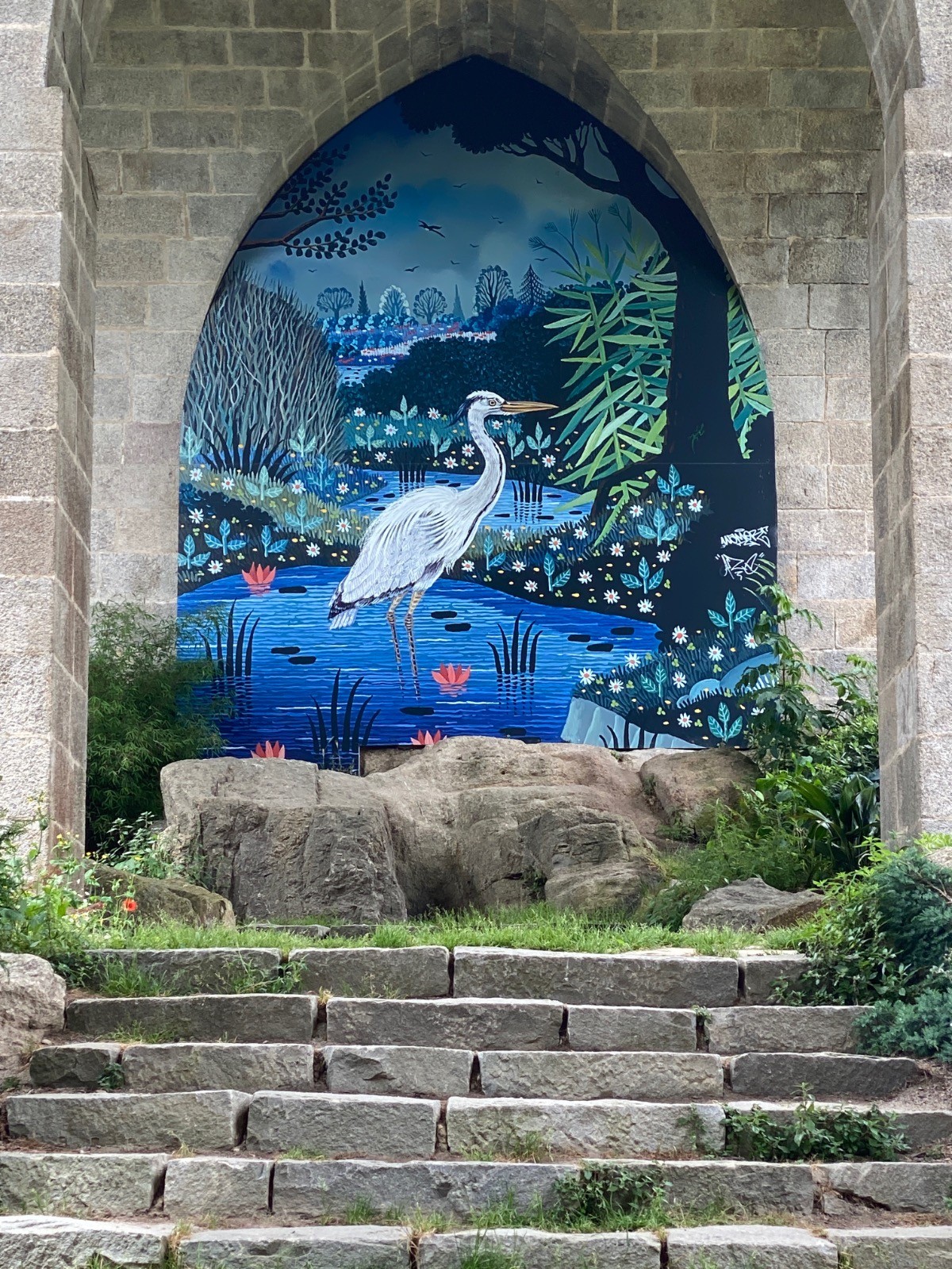Et sous le viaduc ( photo no 24 ) : Un véritable écrin pour l'œuvre Le Jardin du héron d'Alain Thomas.