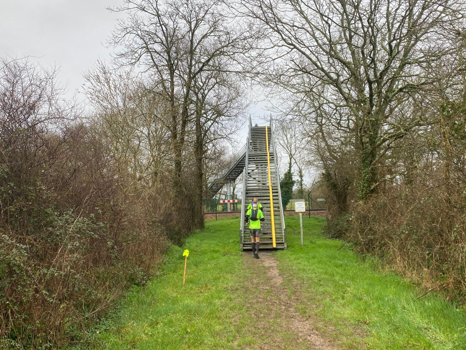 Kilomètre 10 : Une grande passerelle métallique enjambe la voie de chemin de fer. ( photo no 14 )