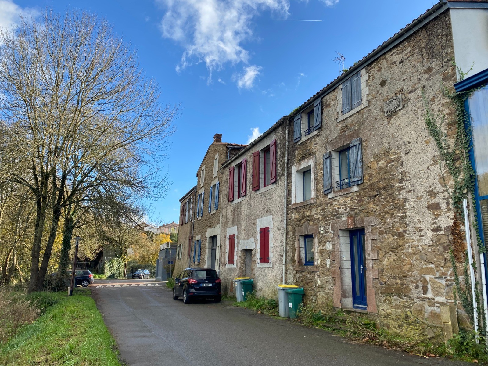 Kilomètre 5 me voilà à Port Launay : anciens quais ( photo no 7 ) , avant-port de Nantes jusqu'au XVIIIe siècle, où se succèdent maisons de maître et maisons de pêcheur. ( photo no )
