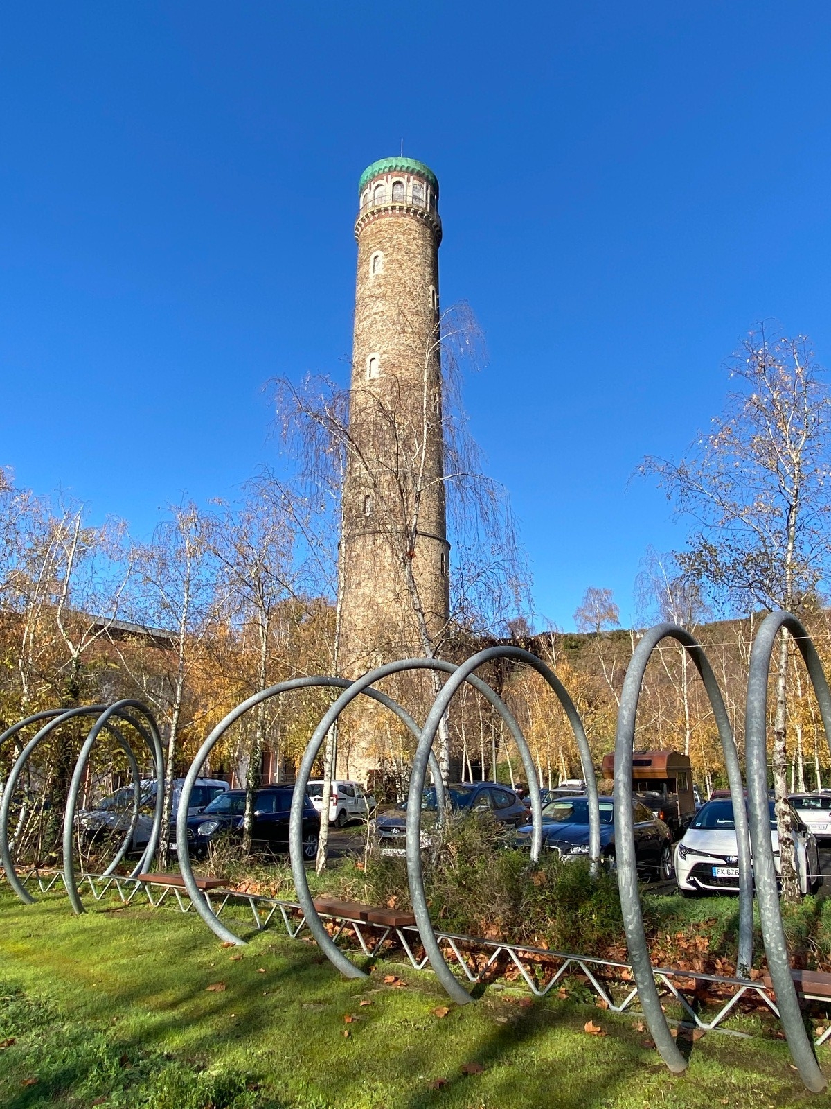 La tour à plomb ( photo no 11 ) ne passe pas inaperçue, elle est l'une des grandes tours à plomb qui servaient autrefois à produire, de manière industrielle la grenaille de plomb destinée aux cartouches de chasse.
