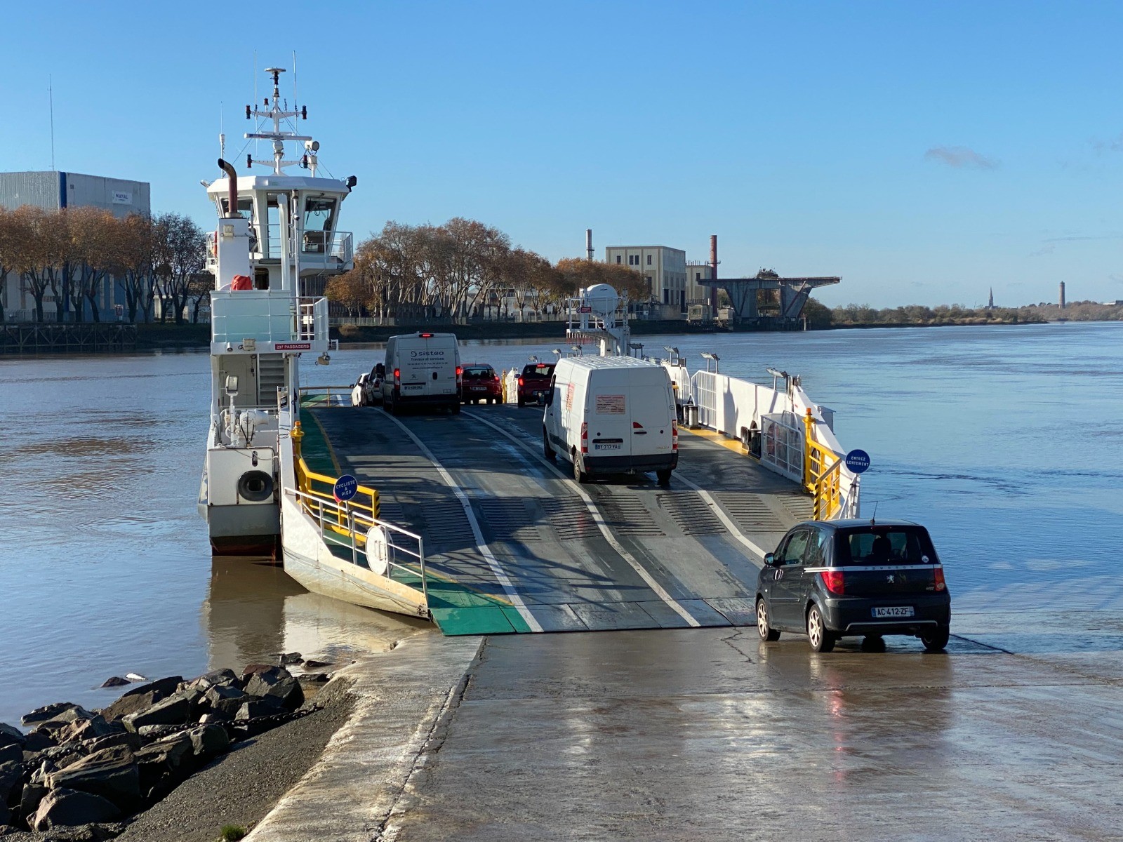 Les bateaux peuvent accueillir piétons, cyclistes, voitures et parfois des chevaux.