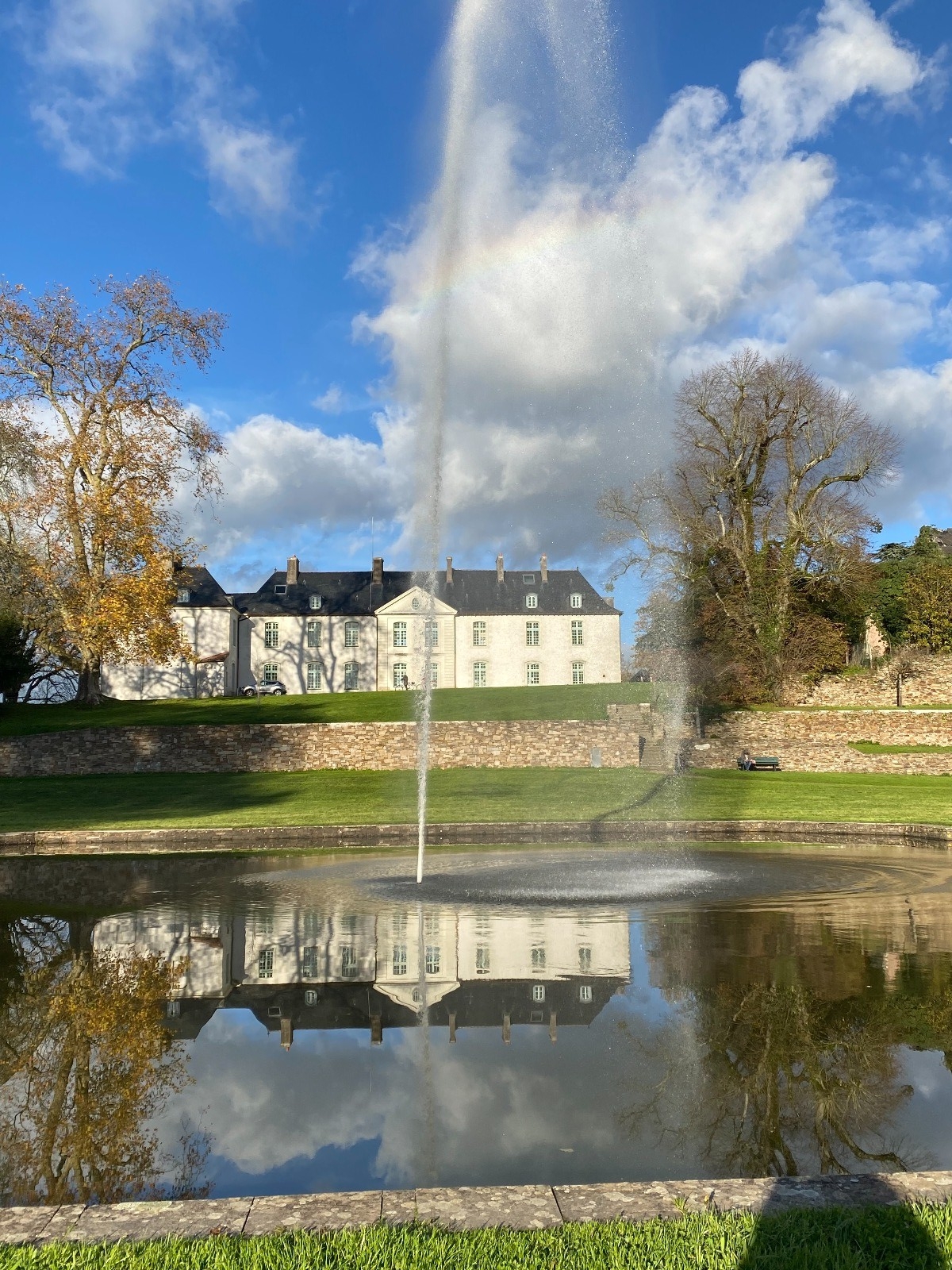 Surtout allez vous asseoir sur le banc qui se trouve près du plan d'eau et face au château. ( photo no 22 )