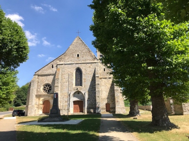 Tourner à gauche et après quelques mètres, à droite de l’autre côté de la rue, apparaît l’église dont la construction débuta à la fin du XIIème siècle. Traverser la rue, puis une petite cour, dite le «cimetière polonais»