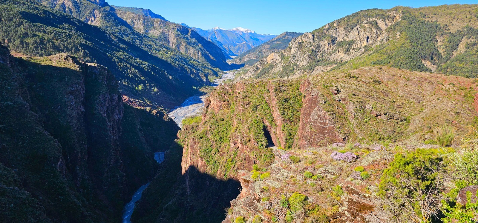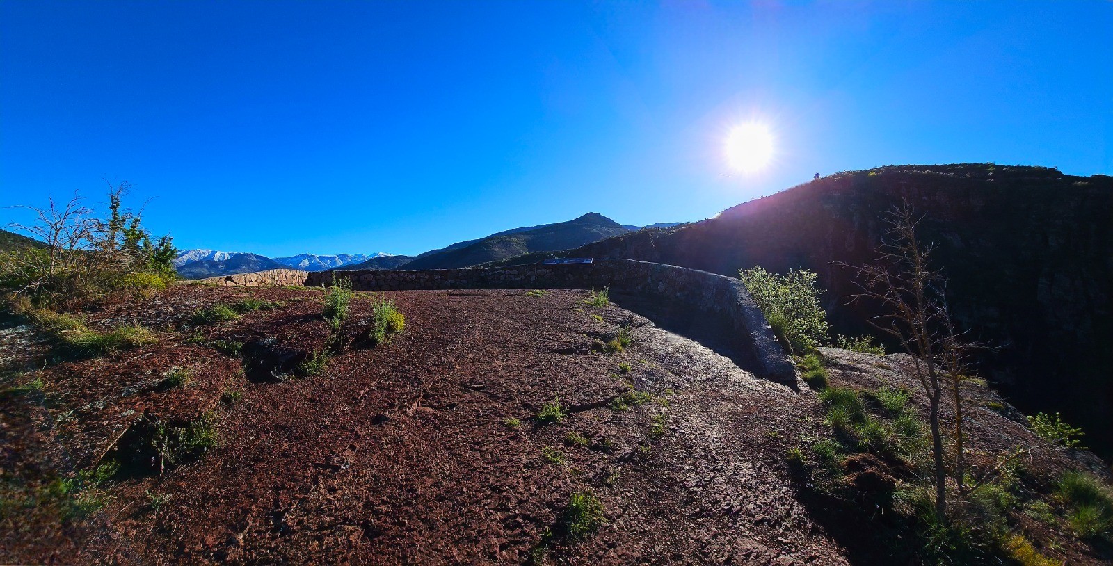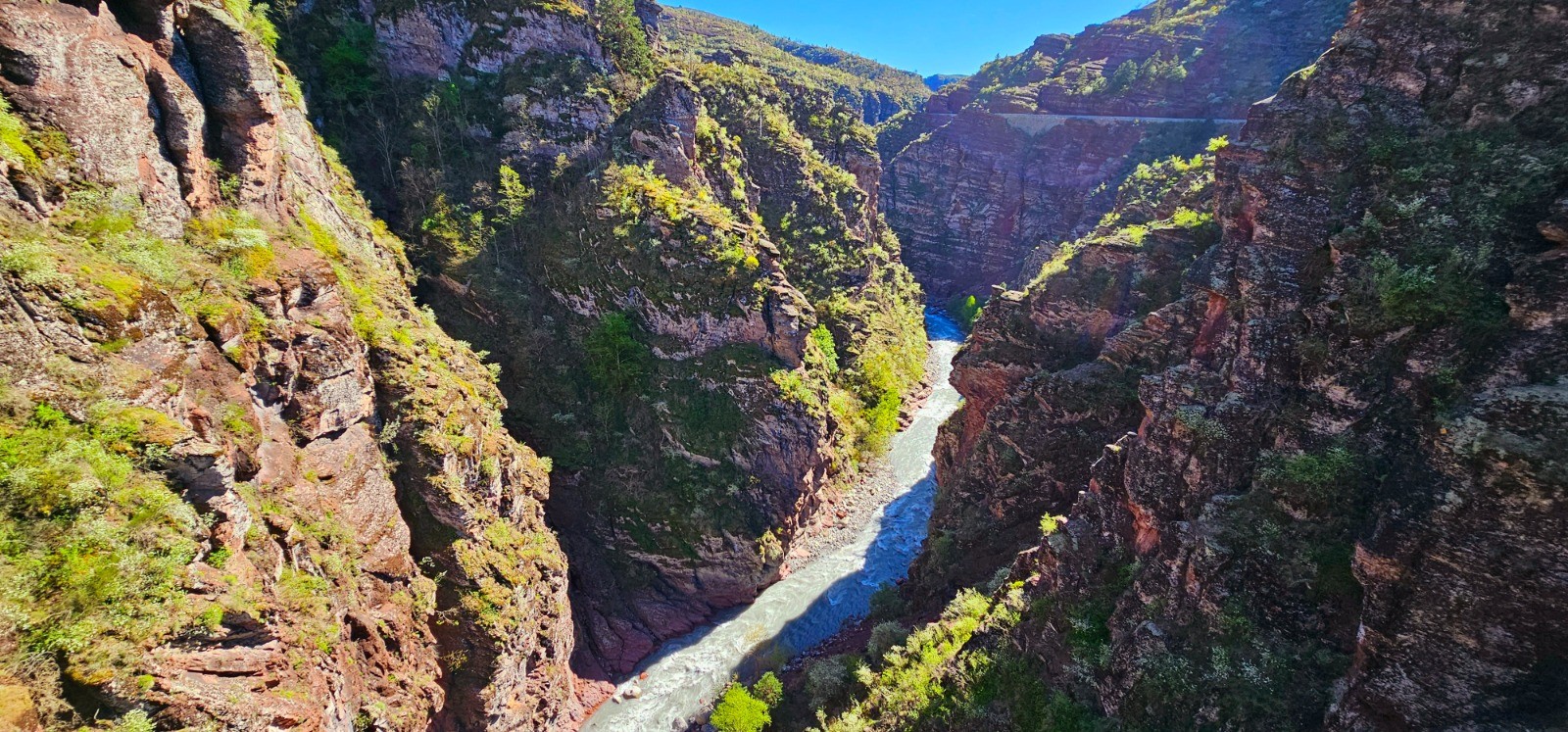 Vue sur gorges et le Pont de la Mariée depuis belvédère des falaises au km 0,76