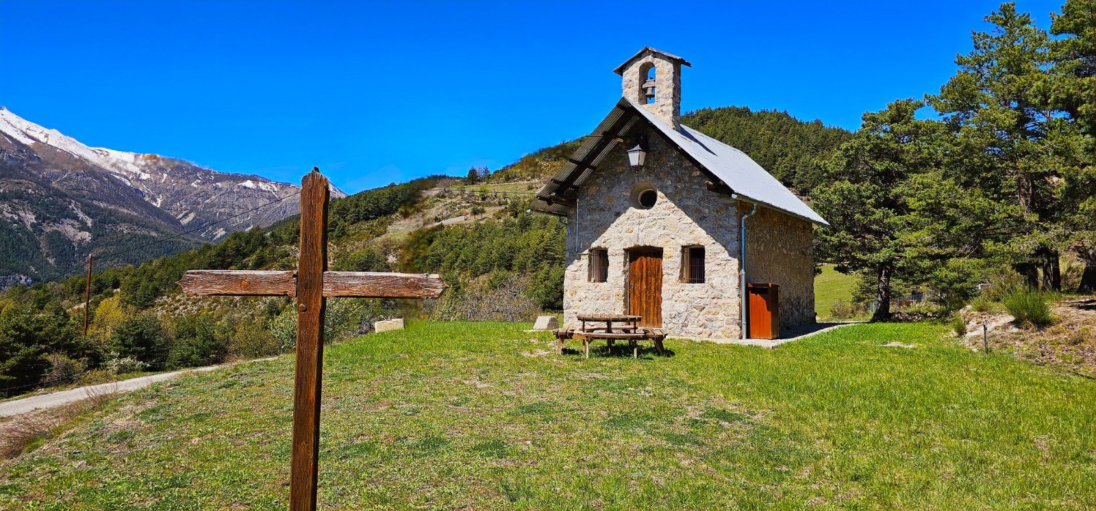 Changement de décor après la B 6 avec ascension à travers forêt de chênes pubescents jusqu'aux campagnes et hameaux successifs de Saussette, des Terrassettes et de Sauze Vieux par bel itinéraire avec marquage jaune. Depuis la B 89 de Sauze Vieux, prendre plein nord en direction de la chapelle Saint-Joseph jusqu'à une zone de coupe de bois avec une table de pique-nique, en bordure de route (km 12,86). Le chemin qui mène au mont Richarmet (bref aller-retour) ne fait l'objet d'aucune indication. Il convient de prendre une sente bien marquée qui débute à hauteur de la table de pique-nique précitée. Sommet de moyenne montagne offrant de belles perspectives sur le vallon du Var et sur le village de Guillaumes situé en contrebas, avec magnifique panorama sur la chaîne enneigée du Mercantour et sur le mont Saint-Honorat qui se découpe à l'ouest.