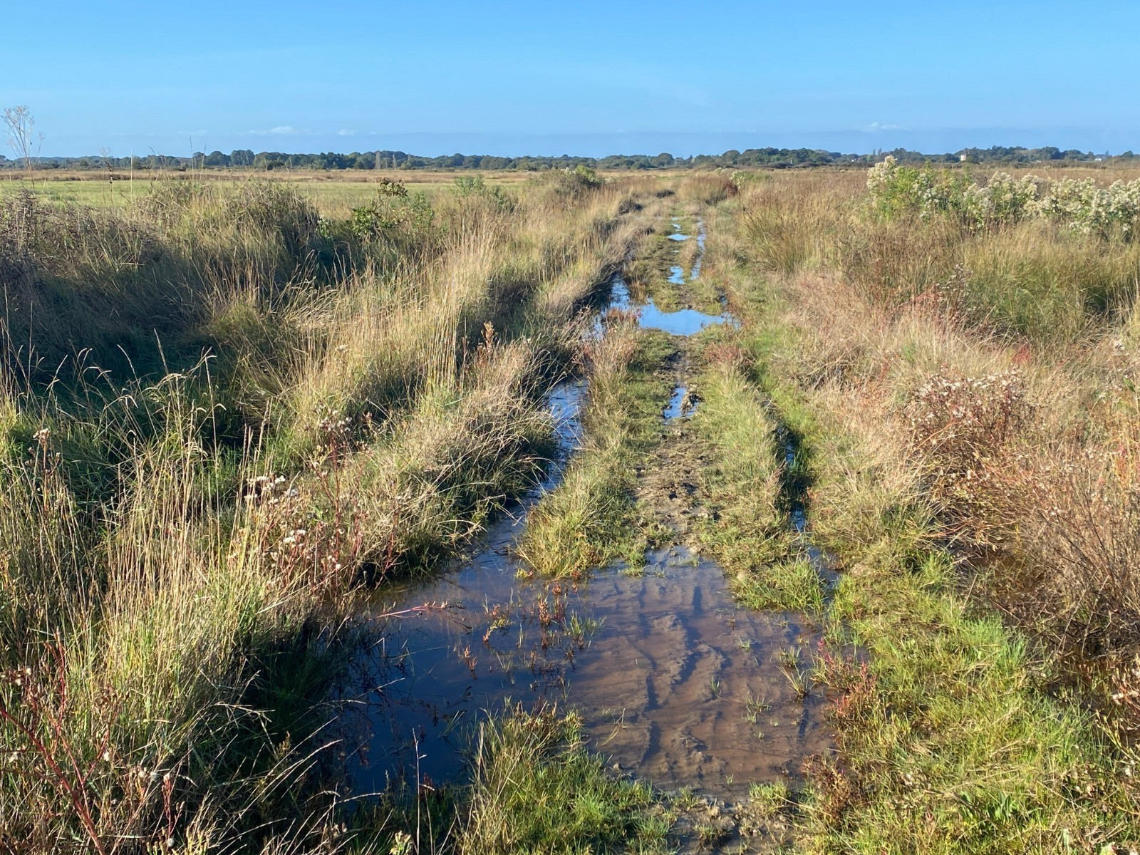 Kilomètre 3 j'entre dans le marais de Mès et le chemin devient de plus en plus gras voire presque inondé. ( photo no 5 )