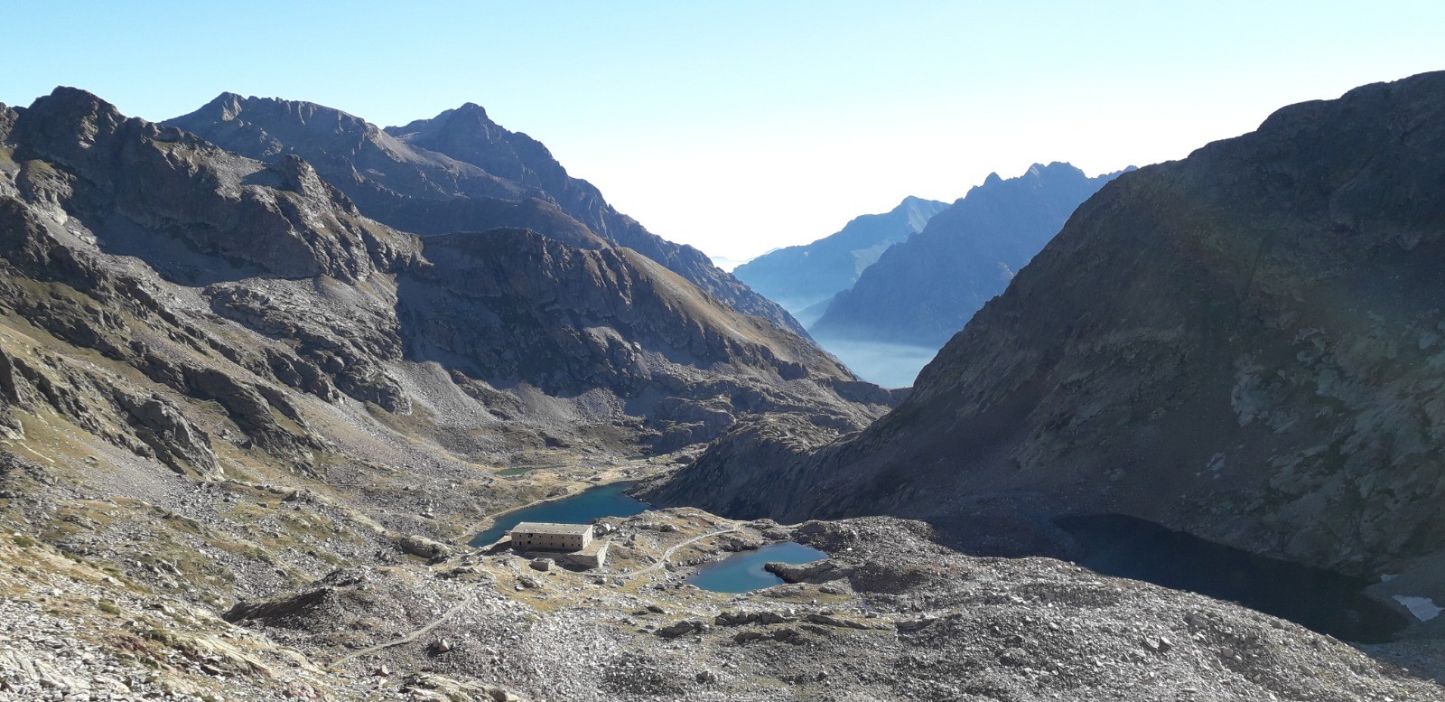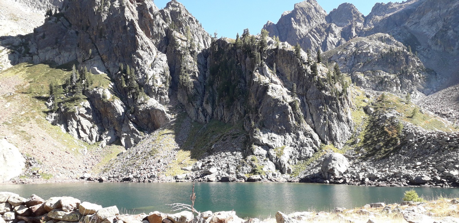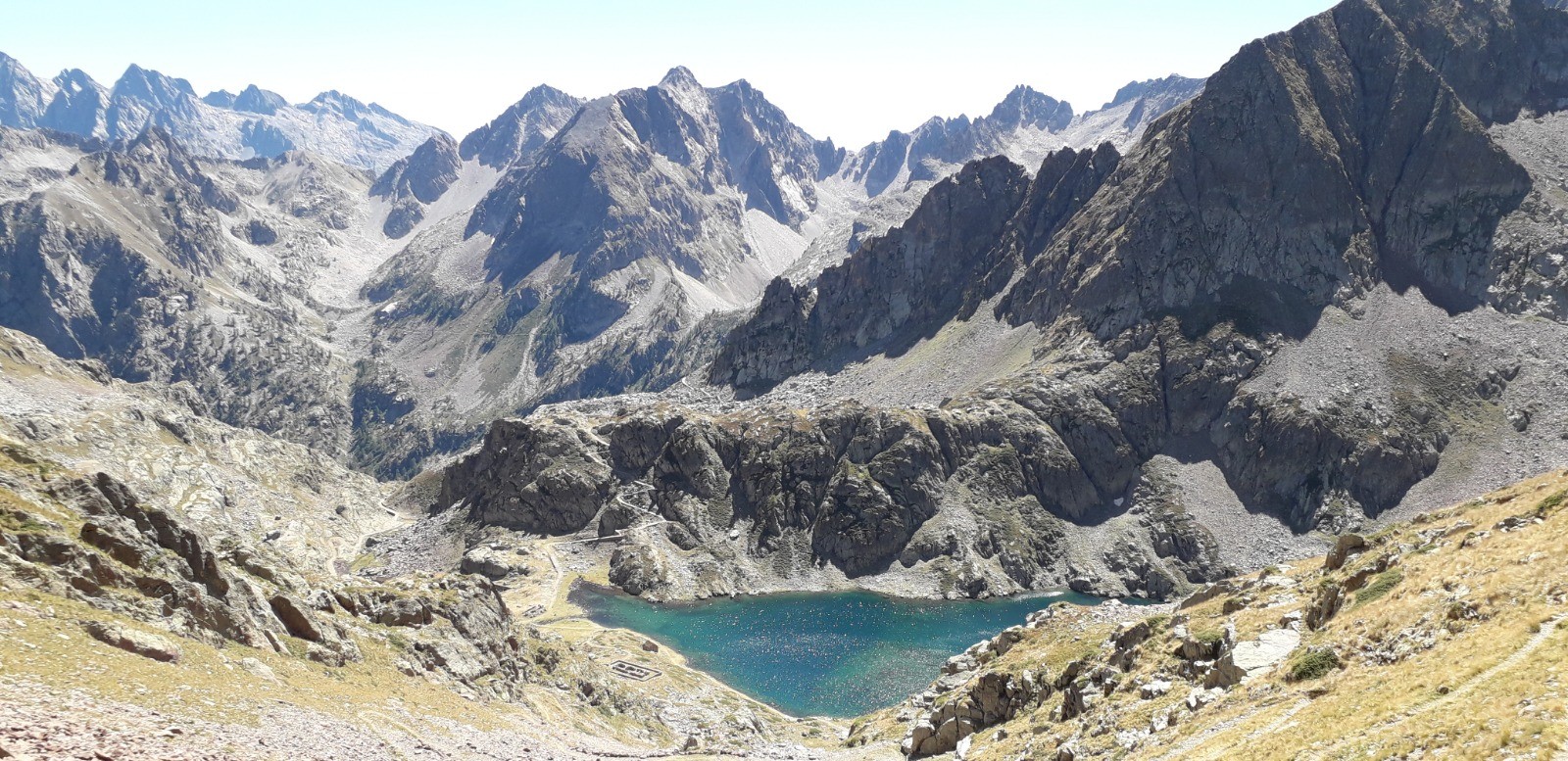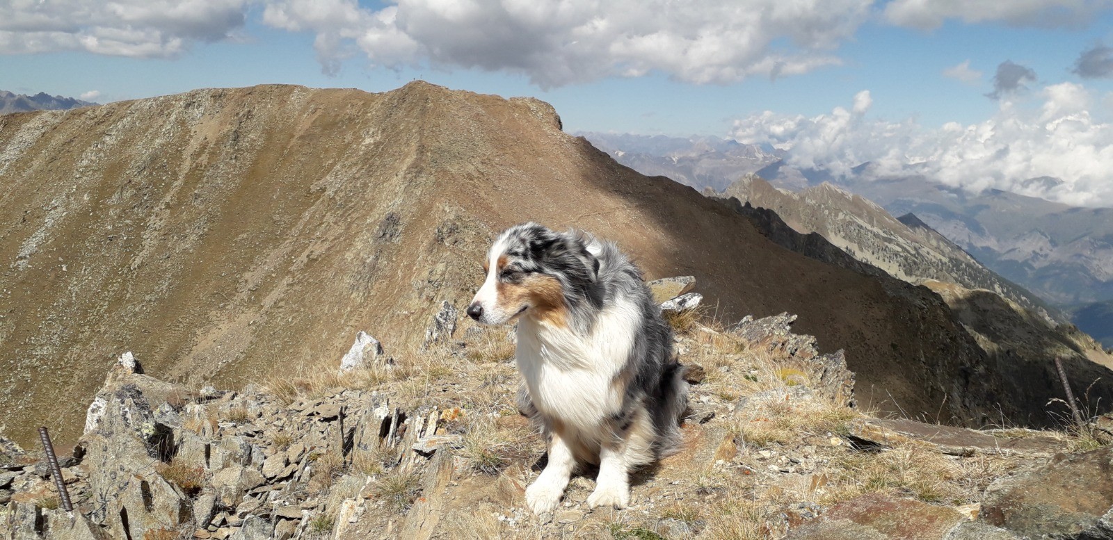 Circuit réalisé le 05/09/20. Belle balade nécessitant une bonne condition physique. Il s'agit d'un long parcours avec une succession de montées prononcées. Ascension classique au départ du chalet Diva/Marano (Isola 2000) jusqu'au col frontalier de Druos (2628 m) qui offre une perspective admirable sur la vallée des lacs de Terre Rouge et sur celle des 4 lacs de Valscura en Italie. Après la montée jusqu'au col de Valscura (2520 m) dans un univers minéral, on amorce la descente vers le lac de Malinvern (2122 m) et de Paur situé au-dessus. J'ai choisi de bivouaquer au bord du 1er à mi-parcours. Présence de chamois à proximité de la cascade qui s'y déverse depuis un petit lac supérieur. Beau coucher de soleil se reflétant sur le lac qui prend des teintes ambrées. Aucune autre présence humaine ce soir-là.La balade se poursuit avec une descente à fort dénivelé jusqu'au refuge de Malinvern (1839 m). Débute alors pour ma part la partie la plus belle de la rando jusqu'aux 2 lacs d'Orgials (2292 m) en empruntant la Via Alpina qui mérite bien son nom et qui longe des lacs d'altitude avec alpage, dans un secteur boisé. On renoue au-delà avec des reliefs alpins austères jusqu'à la cime de la Lombarde (2800 m), soit un dénivelé de près de 1000 m au départ du refuge, qui se prolonge jusqu'à la cime de Vermeil (2778 m) qui n'est pas spectaculaire en soi mais qui offre bien évidemment un beau point de vue sur les 2 versants frontaliers. On amorce aussitôt une autre grande descente sur des pistes caillouteuses avant d'entamer une nouvelle montée dans un univers quasi hostile d'éboulis rocheux. Praticabilité pouvant s'avérer difficile pour un chien même aguerri comme c'était le cas pour le mien. On parvient enfin au Pas du Loup (2665 m) pour basculer abruptement en France vers les lacs de Terre Rouge.