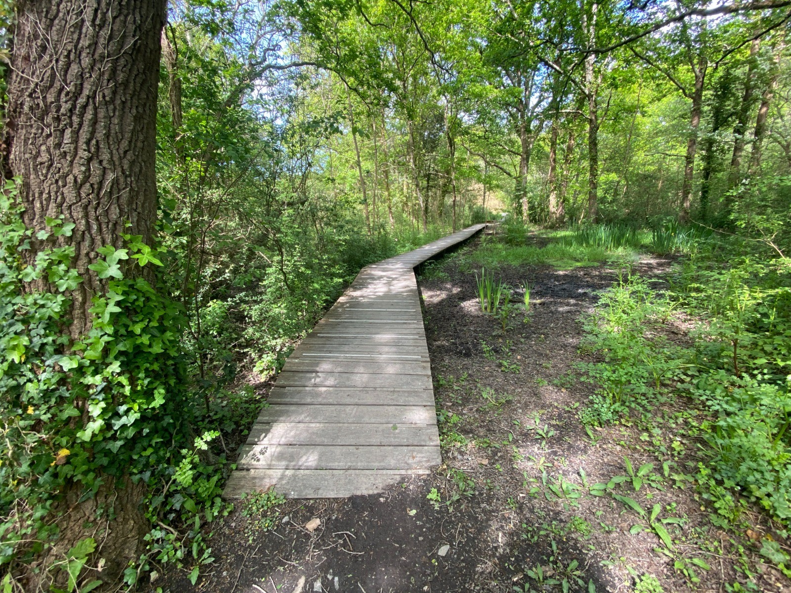 Le parcours emprunte de nombreux chemins forestiers et traverse des zones humides riches en biodiversité.