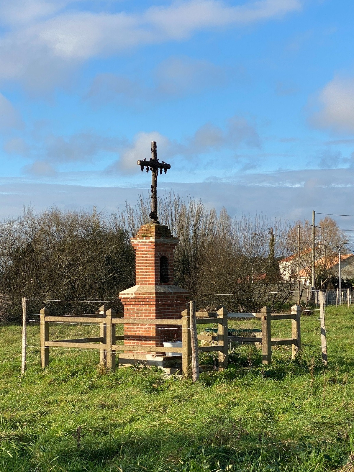 Un kilomètre pour s'extirper de la zone pavillonnaire et nous voilà à La Pichauderie où un calvaire ( photo no 1 ) trône au milieu d'un champ.