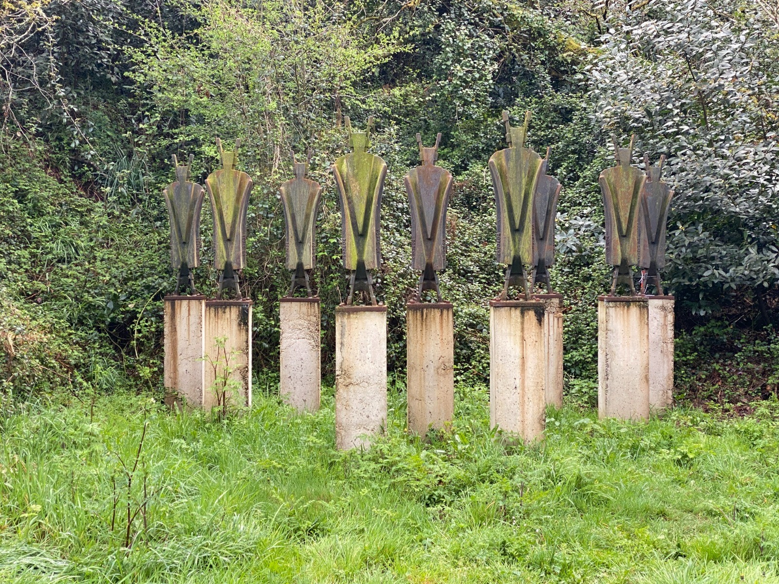 Au pied du barrage, sur votre gauche en remontant le chemin, vous pourrez admirer l'oeuvre pérenne ( photo no 7 ) "Les Worthies" de Marianne Vitale.