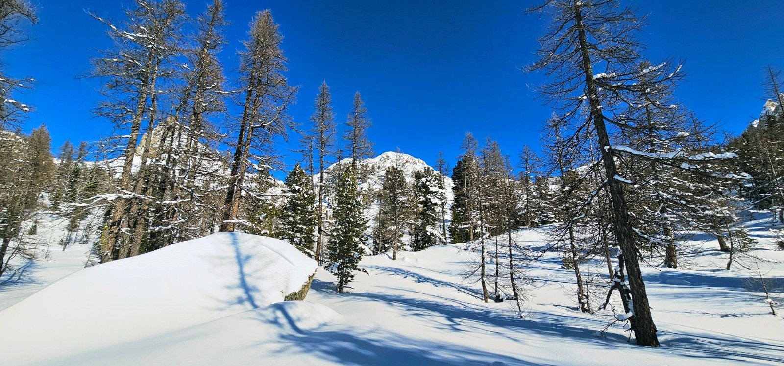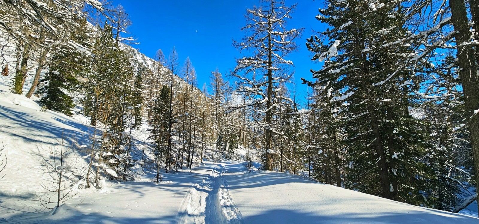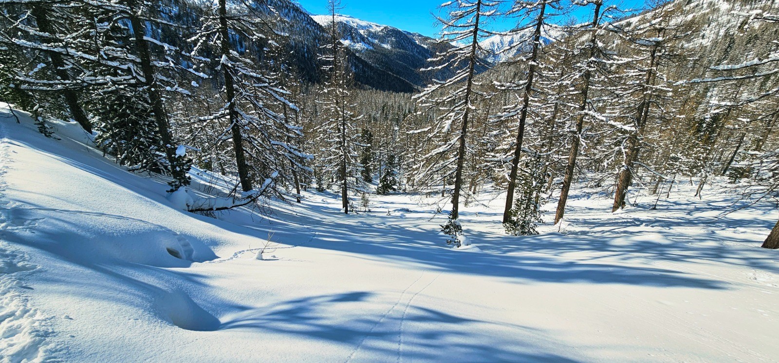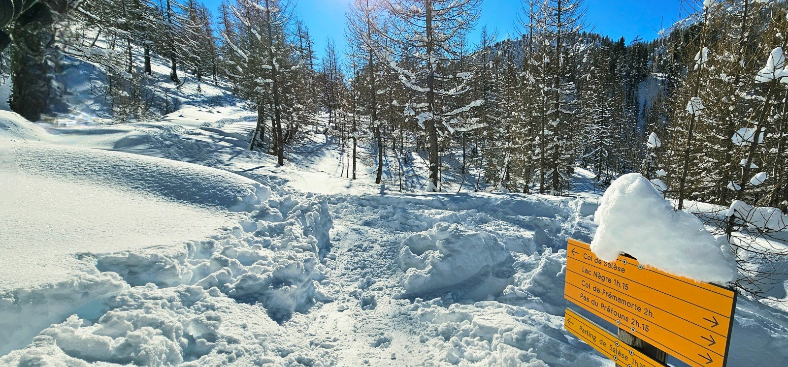 J'avais envisagé pour ma part de poursuivre cette sortie solo au-delà du col de Salèse en direction des lacs de Graveirette ou du lac Nègre mais une neige profonde consécutive à des chutes abondantes m'a contraint d'y renoncer à l'approche de la côte 2272 précédant le Caïre Pounchu en raison d'un BERA de niveau 3 et de pentes exposées. Trace rectifiée en conséquence.