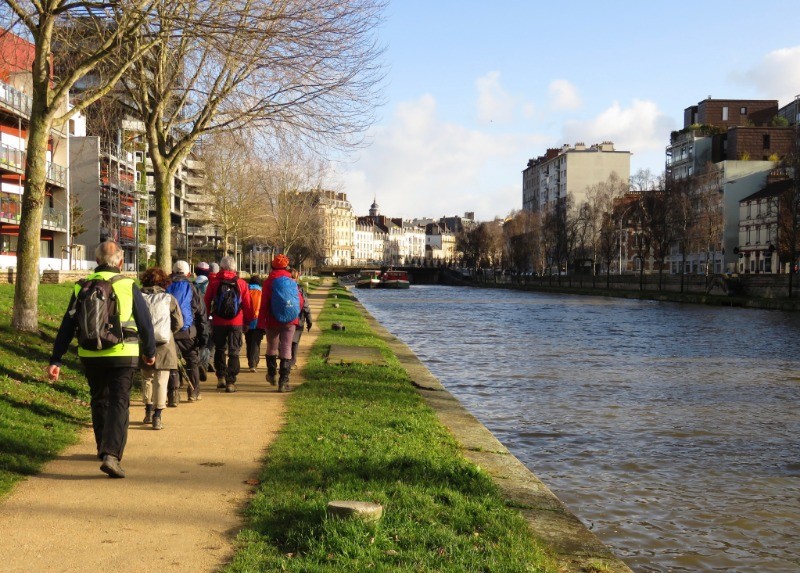 Prendre le sentier balisé nord vers le chemin des Louvries, puis la coulée verte entre la Bellangerais et la Motte-Brulon. Ensuite les prairies Saint-Martin, le parc des Tanneurs, les bords de l'ille jusqu'au parc Saint-Cyr et l'écluse du Moulin du Comte. Retour vers le centre ville par le quai d'Auchel, le jardin de la Confluence, le Quay Saint Cyr et la Croix de la Mission. Cheminement dans le centre historique (cathédrale St Pierre, église St Sauveur, place de la mairie, le parlement de Bretagne, place Hoche, rue Sainte Melaine). Poursuivre par le parc du Thabor, le palais St Georges, la rue Dupont des Loges, les Grands Moulins de Rennes, la promenade des Bonnets Rouges. Retour par le parc Oberthur, le stade Courtemanche, le Parc Maurepas et le Parc des Gayeulles.Rennes, au coeur de la ville : www.visugpx.com/topos/z1nABkrVid