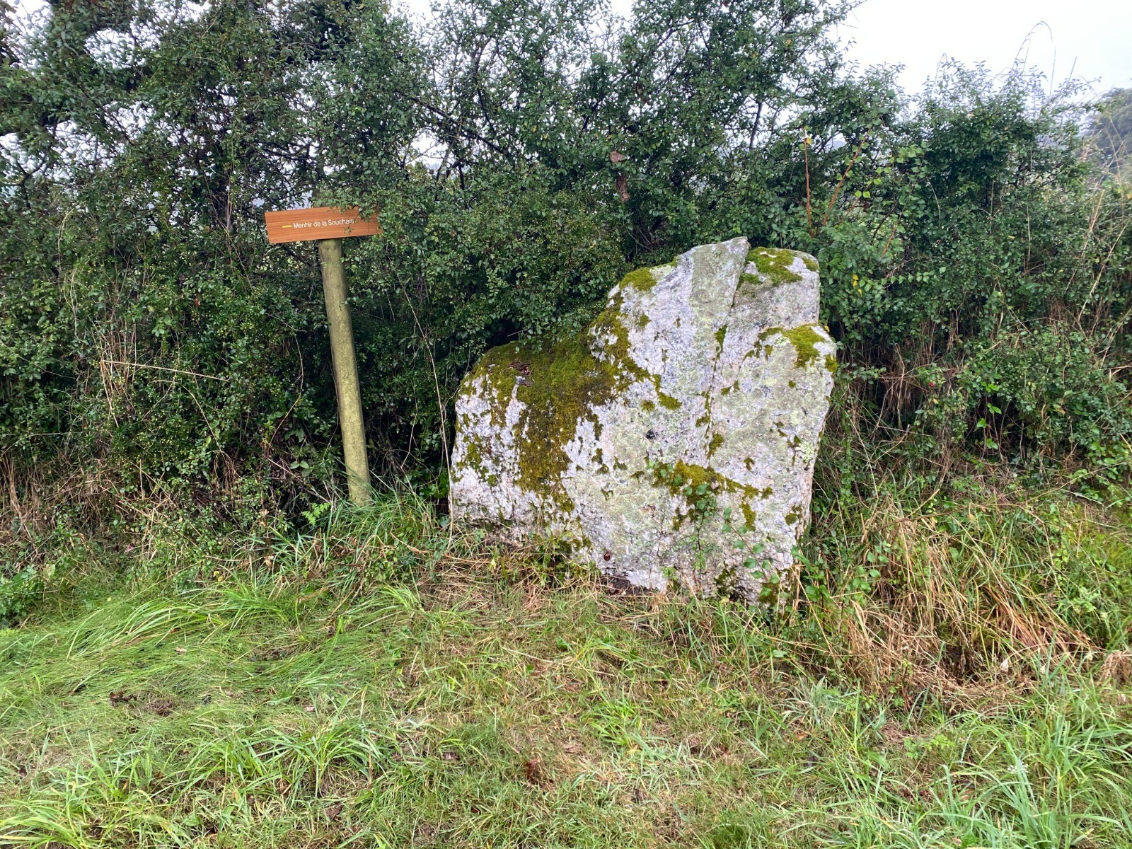 Kilomètre 2.2 nous passons devant un tout petit menhir : Menhir de la Souchais ( photo no 6 )