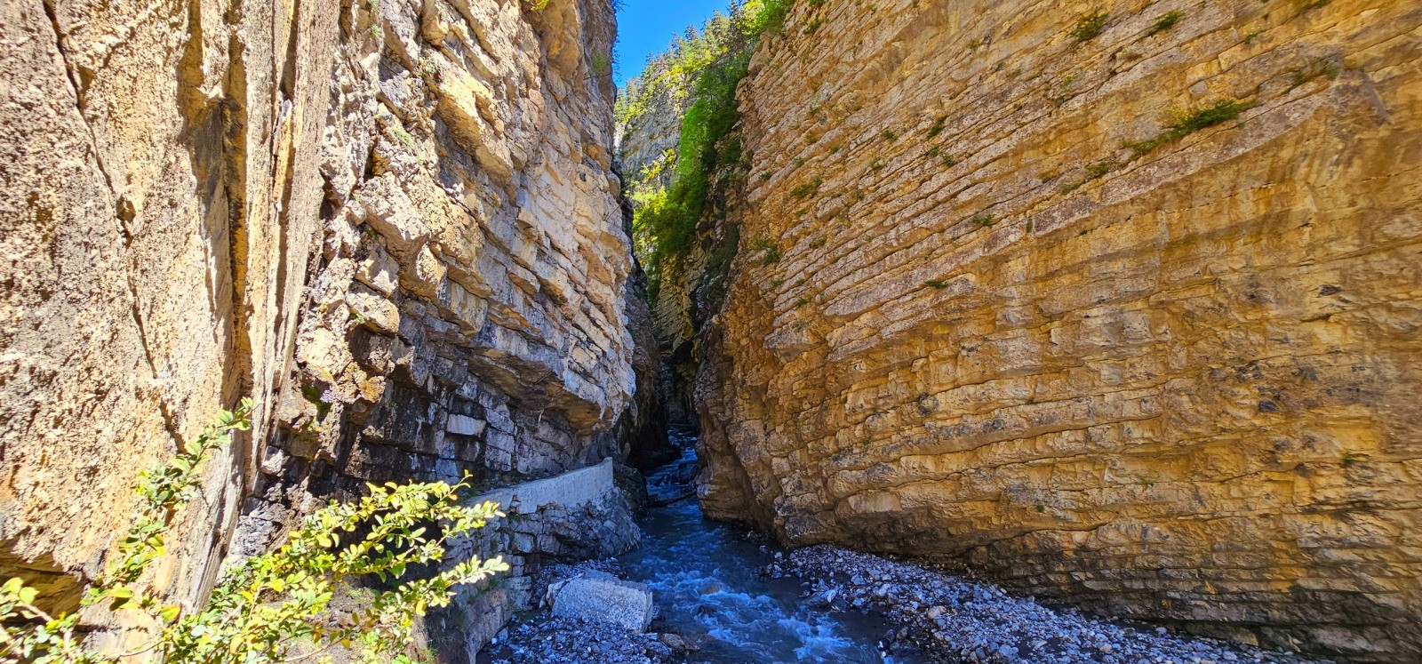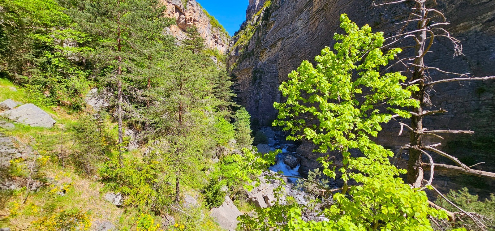 Remonter en sens inverse vers la "B 202 a" via le collet de Sen avec la seule ascension de cette 2nde phase (0,67 km pour d+ 99 m) pour revenir à la balise 201. Prendre dès lors le sentier orienté au sud-est qui serpente à travers une belle zone boisée jusqu'aux balises successives 198 et 197. Un chemin très bien balisé suit les gorges sur 1,5 km et conduit sans encombre à une impressionnante cascade en rejoignant le lit de la Barlatte sans qu'il soit nécessaire de traverser ce cours d'eau.