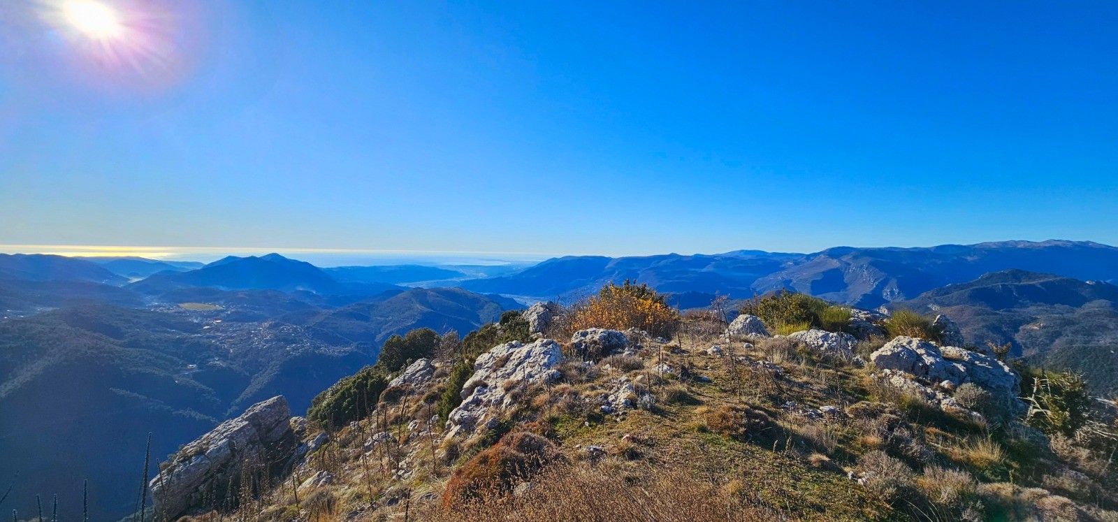 Vaste circuit entre mer et montagnes reliant le sanctuaire de la Madone d'Utelle avec une phase hors piste passant par le sommet méconnu du Collet d'Huesti. Parcours en boucle comprenant une extension en A/R jusqu'au sanctuaire de la Madone des Miracles depuis le col d'Ambellarte dans le cadre d'une belle rando hivernale enserrée entre la vallée du Var et les gorges de la Vésubie au départ du hameau de La Villette (commune d'Utelle) avec de vastes perspectives panoramiques depuis chacun des sommets évoqués.