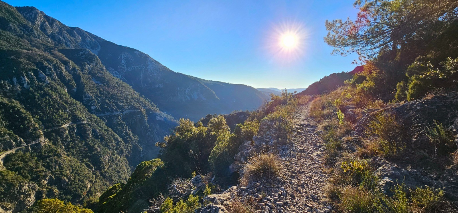 La partie hors sentier menant au Collet d'Huesti depuis le lieu-dit Villa Plana jusqu'au point côté 1069 pimente cette sortie, sans grande difficulté, avec une magnifique vue sur la vallée du Var mais elle peut constituer une simple phase optionnelle pour ceux qui souhaiteraient poursuivre jusqu'au sanctuaire en restant sur le PR.