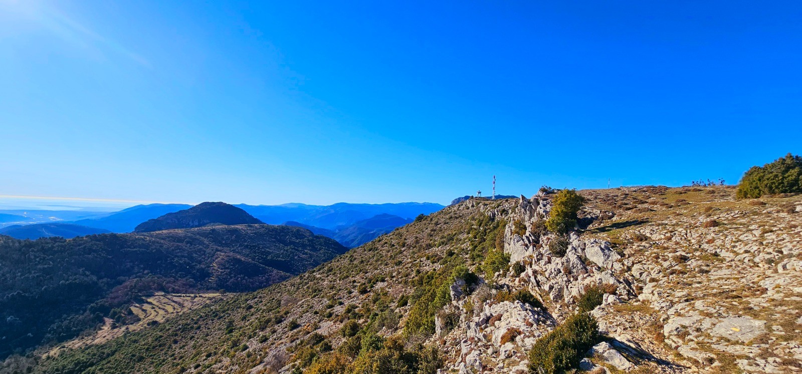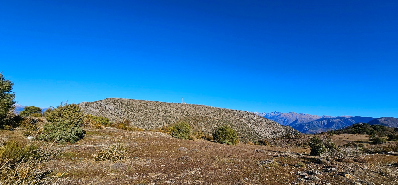 Longer vers l'ouest l'immense plateau de la Crête de la Madone en passant successivement par la table d'orientation du Club Alpin (point culminant) et par son antenne TV avant de redescendre par la piste ("barriérée") située après cette dernière.