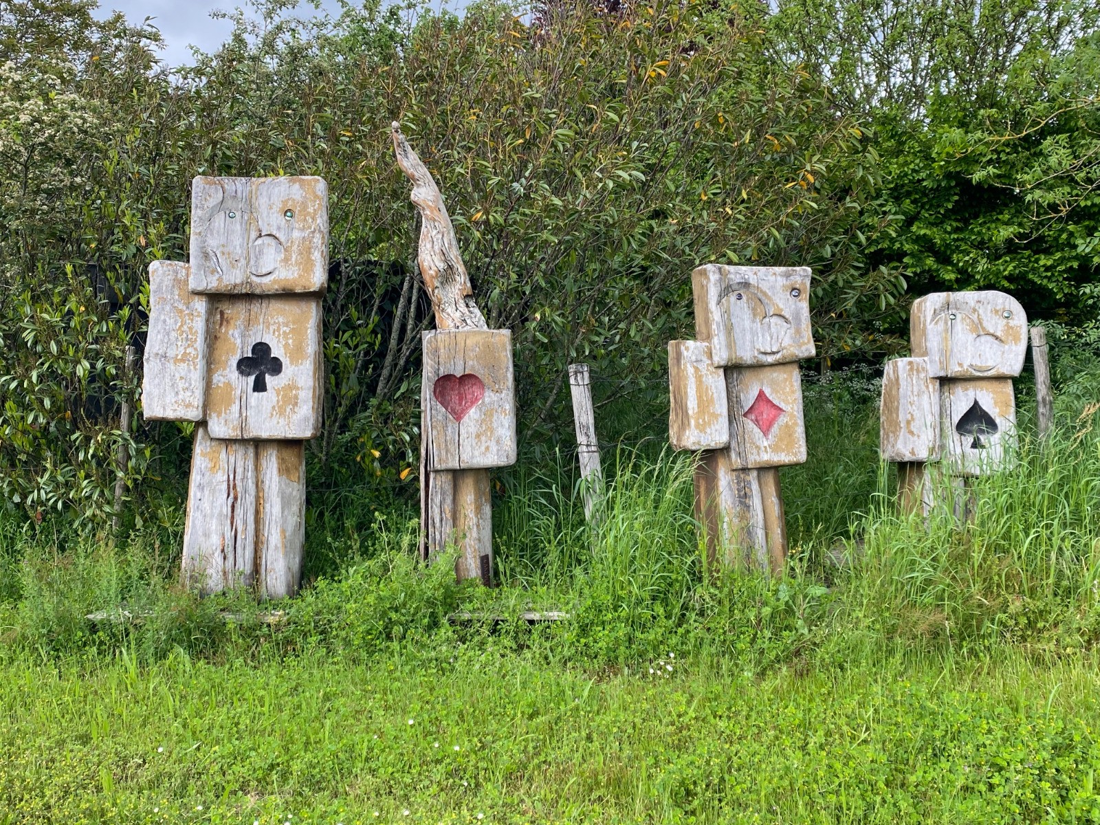 Kilomètre 5, village de La Piltière, un artiste nommé Gandolfo, peintre et sculpteur libre expose près de chez lui ses oeuvres dans un champ. ( Photo no 4 et Photo no 10 )