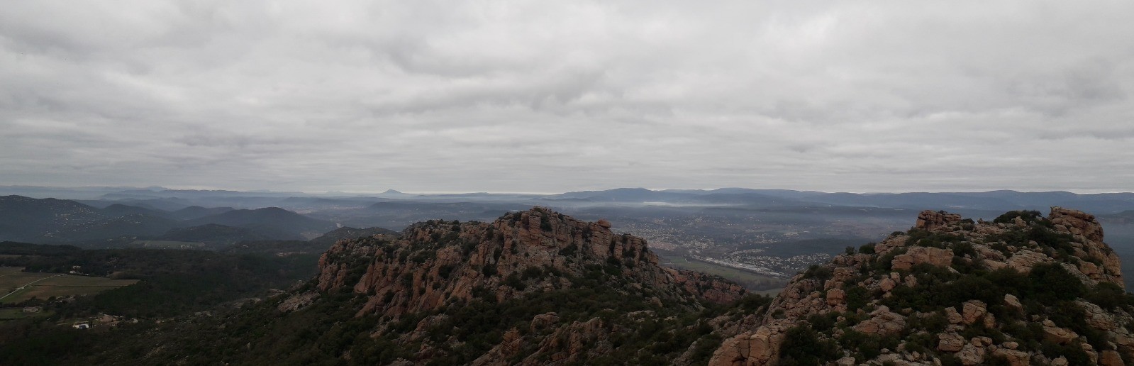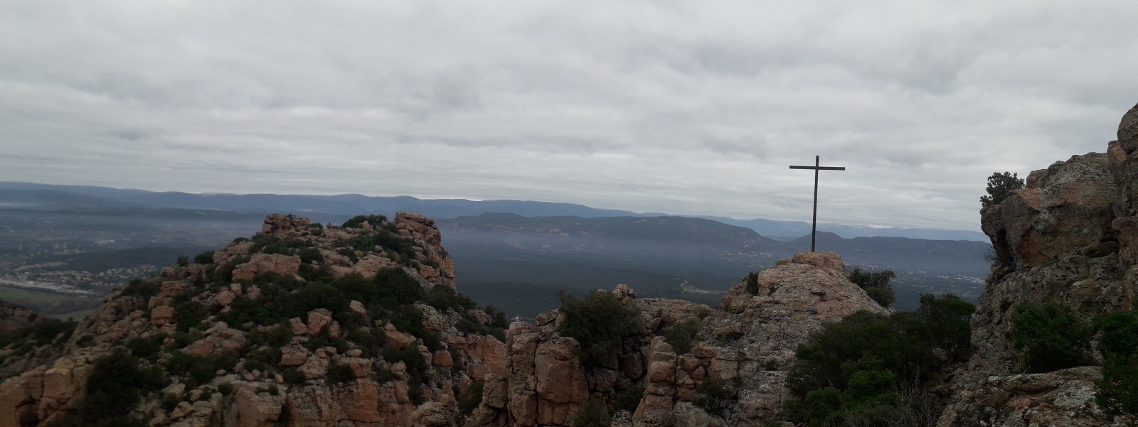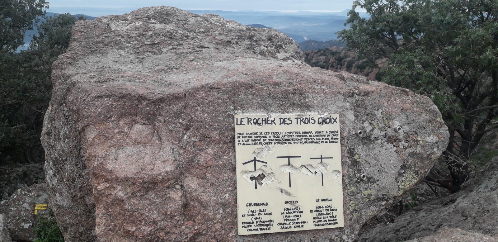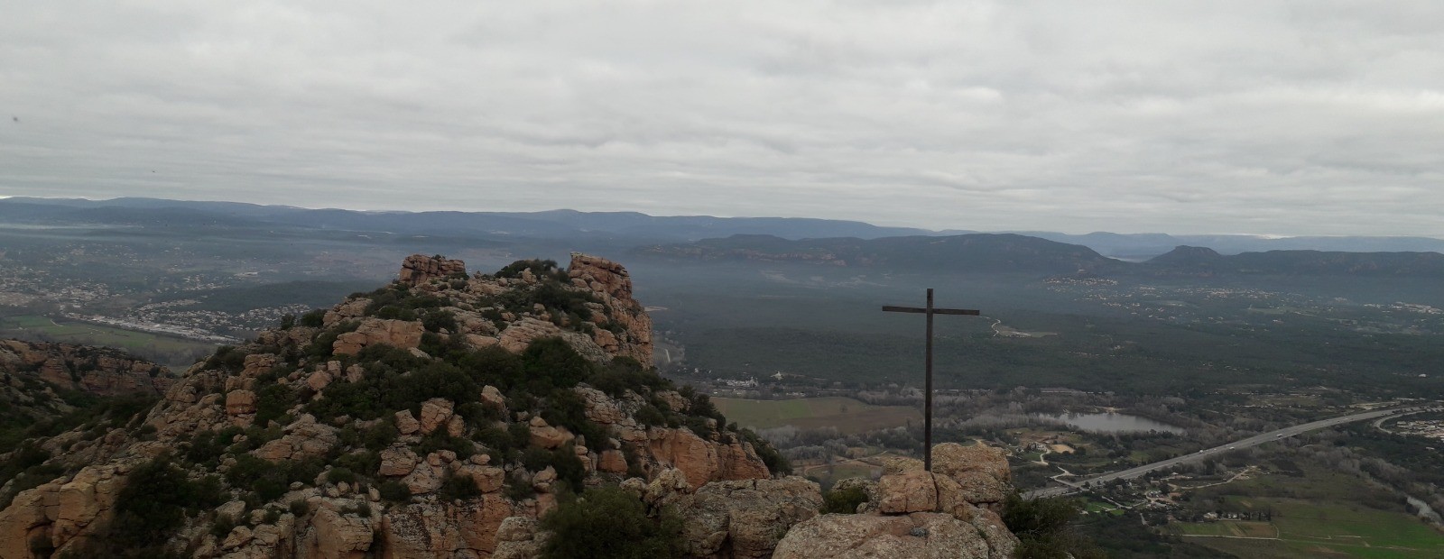 Départ depuis l'immense parking du Pont d'Argens situé en vis à vis de la belle chapelle St Roch datant du XII ème siècle. Cheminement très bien signalisé en suivant le GR 51 avec phase A/R jusqu'au sommet du Rocher de Roquebrune et ses 3 croix en acier érigées au début des années 90, inspirées de peintures célèbres de la Crucifixion (vous renseigner sur WEB sur la légende attachée à l'implantation de ces croix). La montée au sommet (373 m) est le seul dénivelé véritable du circuit. Une main courante en acier est disposée sur une partie rocheuse mais il n'y a pas de véritable difficulté pour l'ascension. J'ai opté pour une phase A/R du GR 51 jusqu'au sommet mais il est possible de redescendre de l'autre côté du rocher par une face plus escarpée équipée d'éléments de via ferrata. La partie sommitale permet de contempler un superbe panorama, du bassin littoral de Fréjus et St Raphaël avec l'Estérel en arrière-plan jusqu'au massif des Maures et les sommets enneigés du Mercantour du côté opposé.