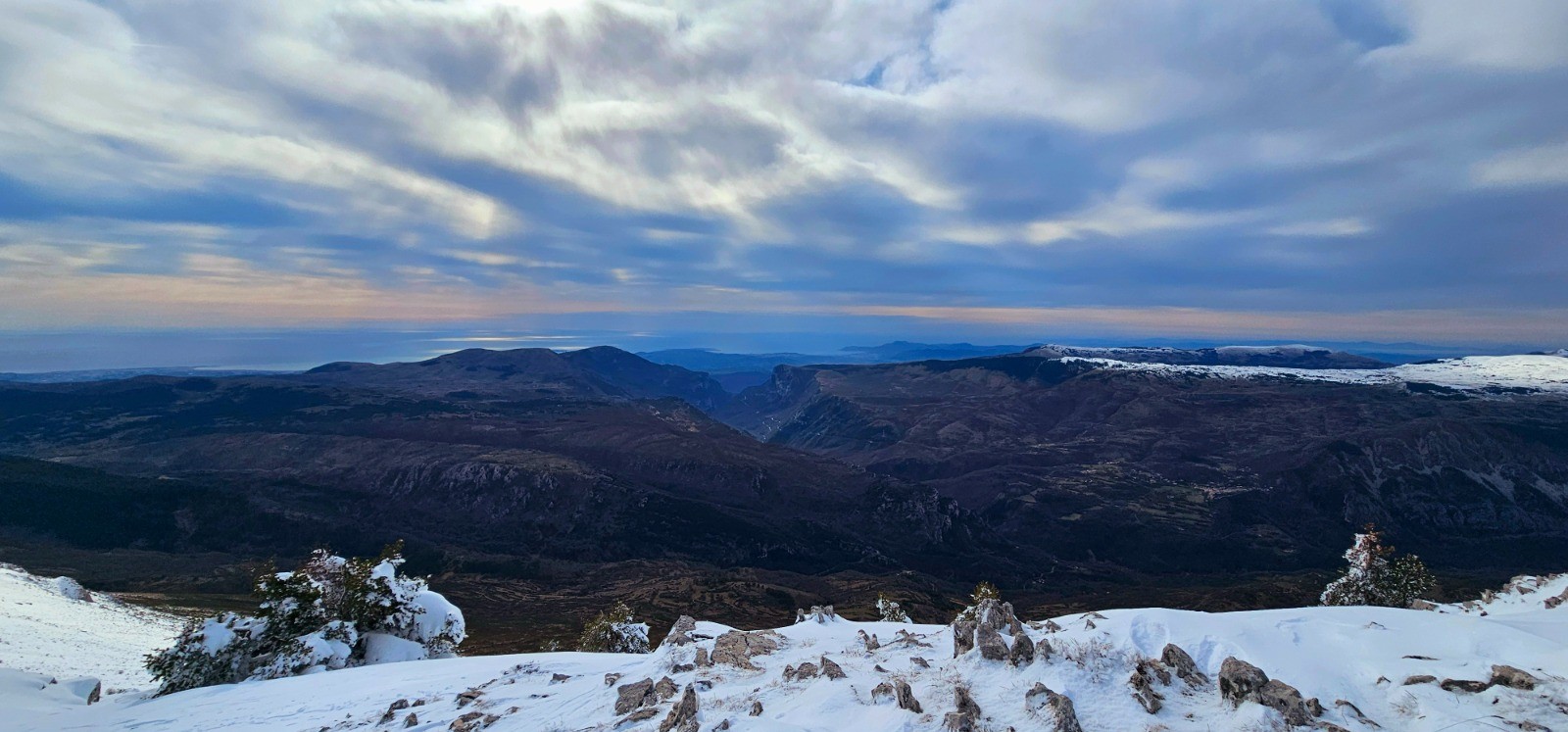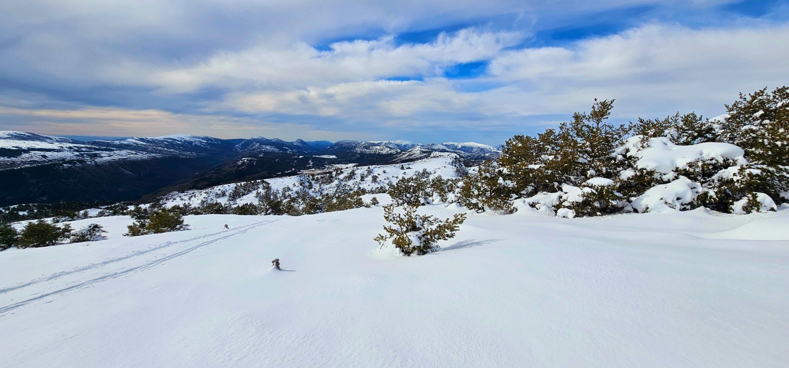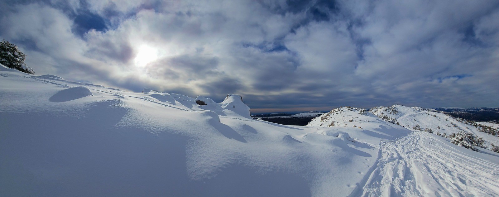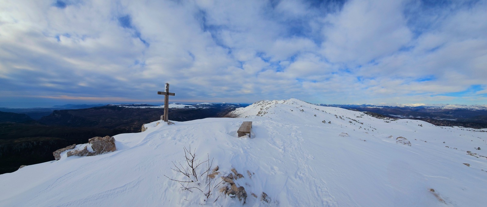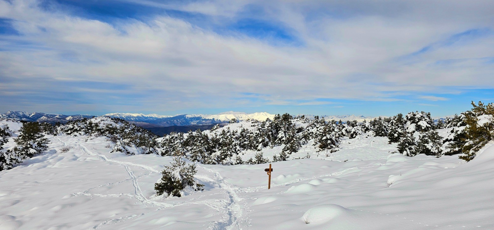 Conclusion : circuit faisant l'amalgame des parcours classiques distincts de la Croix de Verse et de la Cime du Cheiron. Eblouissante sortie solo dans le cadre d'une rando d'envergure à réaliser par de bonnes conditions d'enneigement pour profiter pleinement du spectacle incomparable offert par cette longue ligne de crête avec d'immenses étendues sauvages lors des phases aller et retour. Il est à noter que seule la cime du Cheiron pourra faire l'objet d'une certaine affluence en raison de l'arrivée d'un téléski mais le reste du parcours se tient constamment à l'écart des pistes de ski qu'on suivra parfois parallèlement sans jamais les côtoyer véritablement. Il convient donc de bien maîtriser son orientation sur de grands espaces et l'usage d'un GPS s'avère indispensable pour suivre le tracé d'itinéraires habituels (PR ou GR) entièrement enneigés. Mentionnons par ailleurs que ce circuit ne comporte pas de pentes véritablement exposées mais qu'il importe néanmoins de le réaliser avec un bon manteau neigeux en raison de l'étendue du parcours. Rando sportive vivement recommandée !