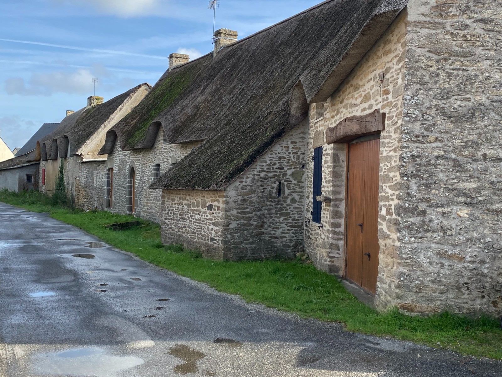 Des chemins très larges parfois ombragés vont nous emmener vers de charmants petits villages avec des maisons en pierre aux toits de chaume. Il est vrai que nous sommes dans le Parc Naturel Régional de Brière.