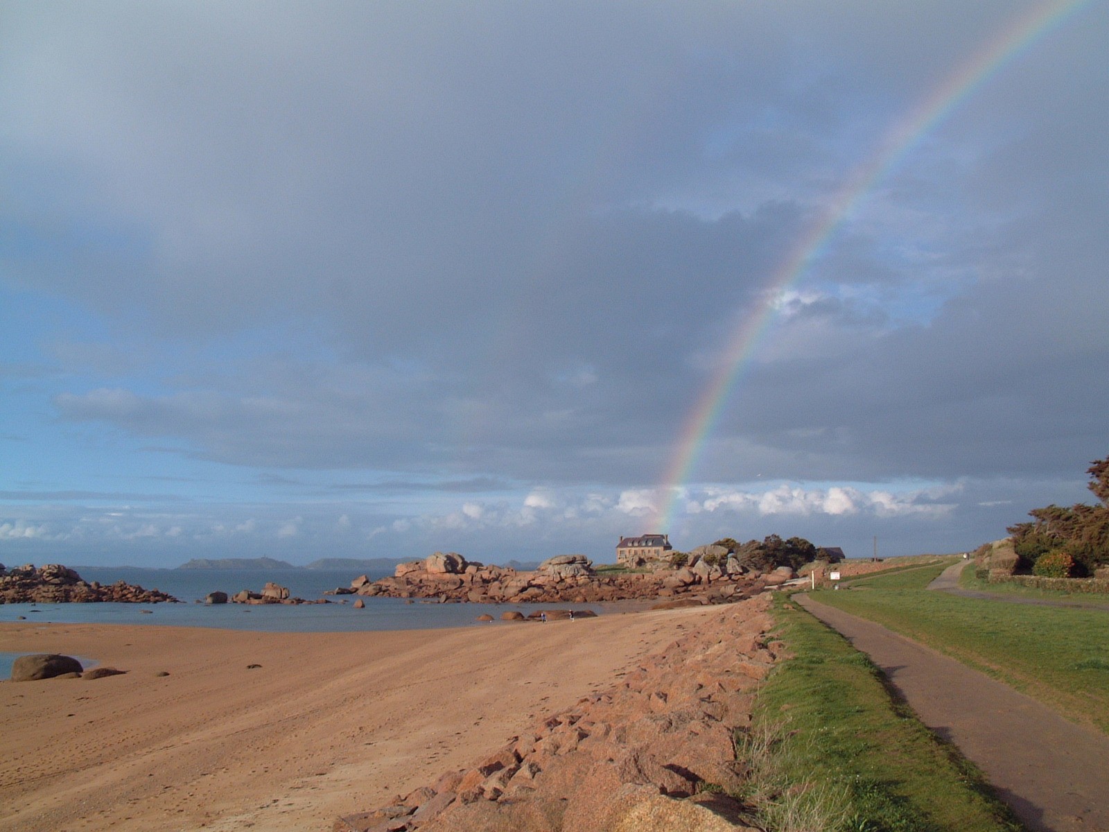 Le chemin longe la plage de Toul Drez puis bifurque sur la droite après la grande bâtisse. On peut alors profiter de la vue sur l'archipel des sept îles.