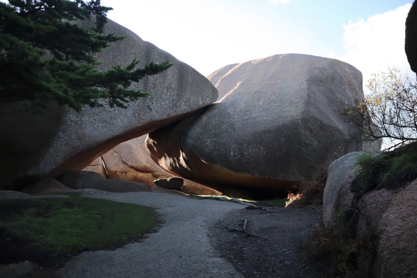 Le sentier passe ensuite entre d'énormes blocs de granit que l'on peut aussi contourner par un étroit passage sur la droite.