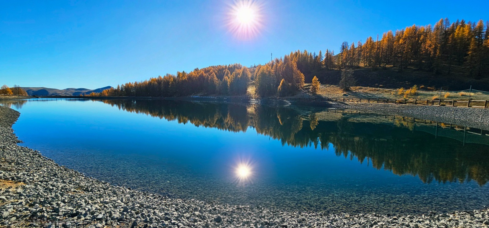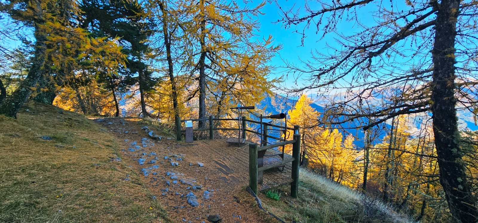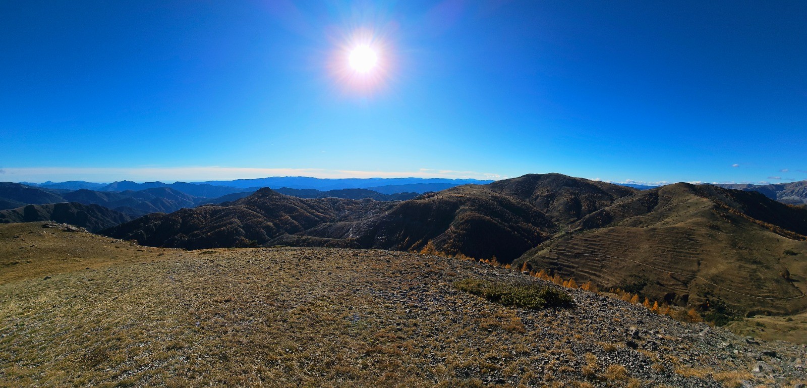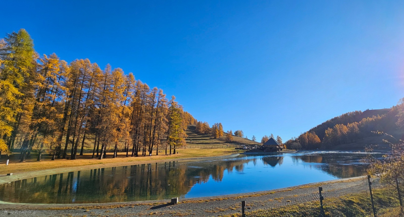 Conclusion : surprenant parcours offrant de magnifiques panoramas durant toute la progression, qui ne soulève aucune difficulté particulière. Superbe environnement automnal à travers mélézins flamboyants, qui contribue à la magnificence de cet itinéraire jalonné d'oeuvres d'art, de lacs collinaires avec vue majestueuse sur tous les principaux massifs du secteur et la chaîne du Mercantour en toile de fond. Cette rando pourrait néanmoins souffrir d'une certaine fréquentation en raison de sa proximité avec les pistes de ski de la station de Valberg mais elle a été réalisée en période pré-hivernale sans rencontrer qui que ce soit sur l'intégralité de cet itinéraire ! il convient donc de choisir avec soin ses dates de sortie mais cette rando qui s'apparente davantage à une sympathique promenade se déroule sans conteste dans un cadre de toute beauté.