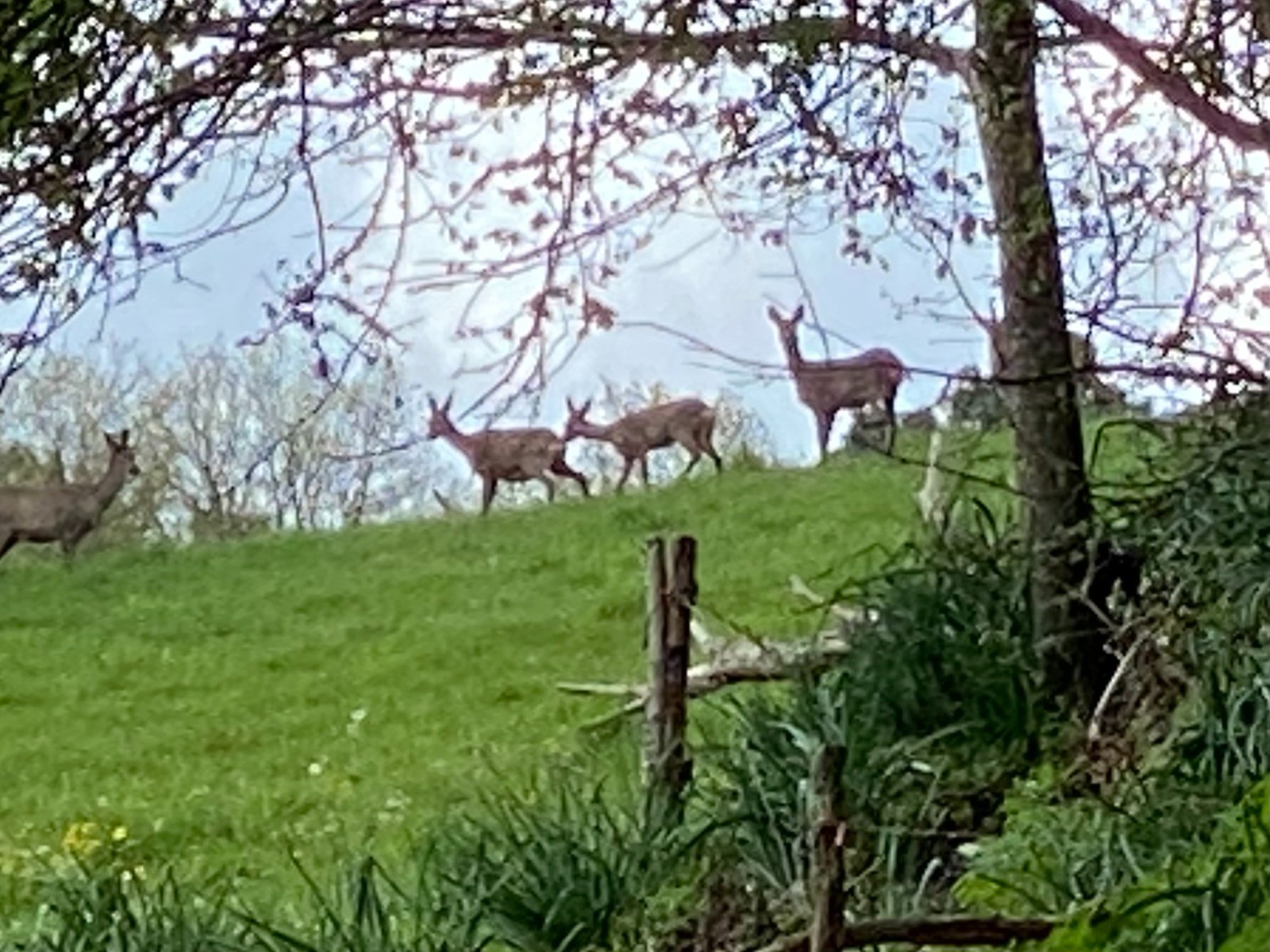 Photo no 6 ( avec zoom maximum ! ) : Une grosse surprise avec six chevreuils en lisière de forêt.