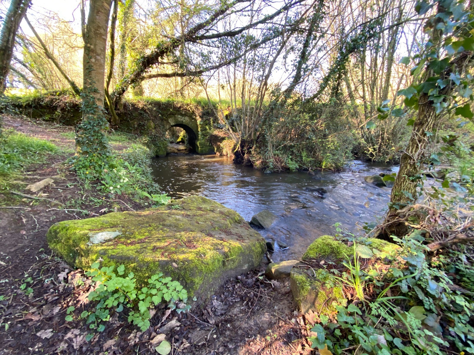 Départ près de l'église dans un petit bourg breton plein de vie avec ses nombreux commerces.
