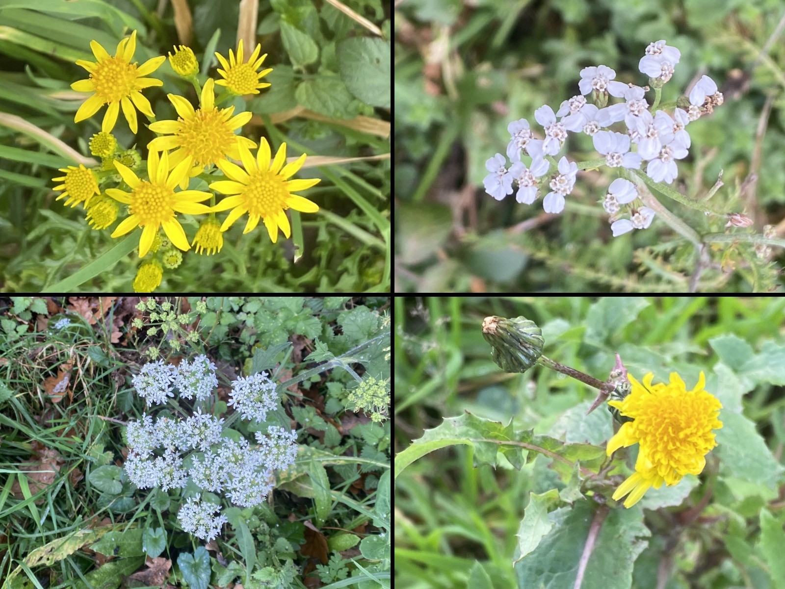 Sèneçon jacobée, Achilée millefeuille , Grande berce et Pissenlit