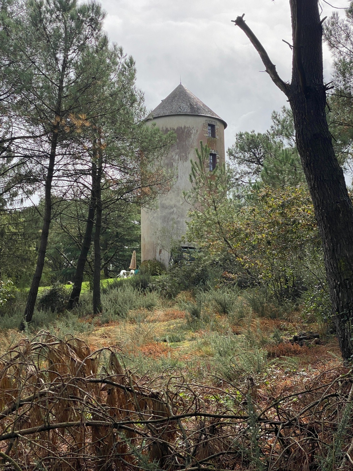 Kilomètres 3 à 4 détour vers la butte des cinq moulins ( photos no 5 à 7 ) dominée par endroit par les pins qui colonisent les landes, encerclant peu à peu les vieux moulins oubliés...