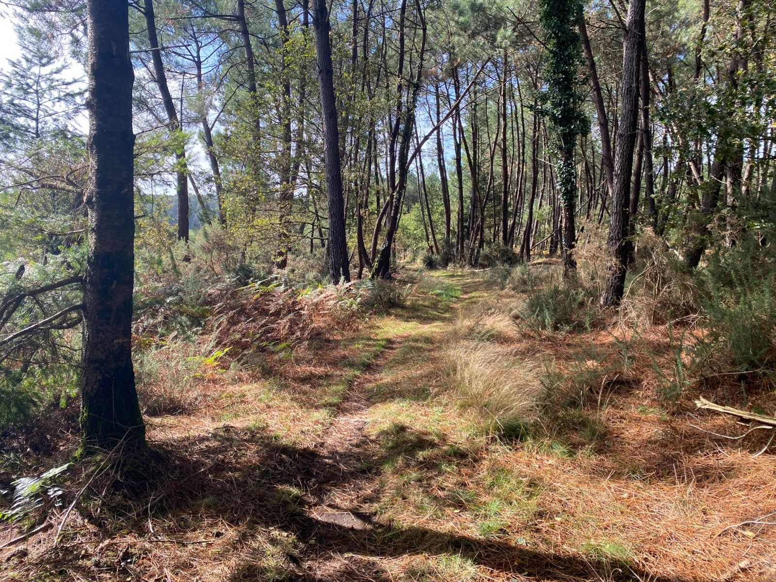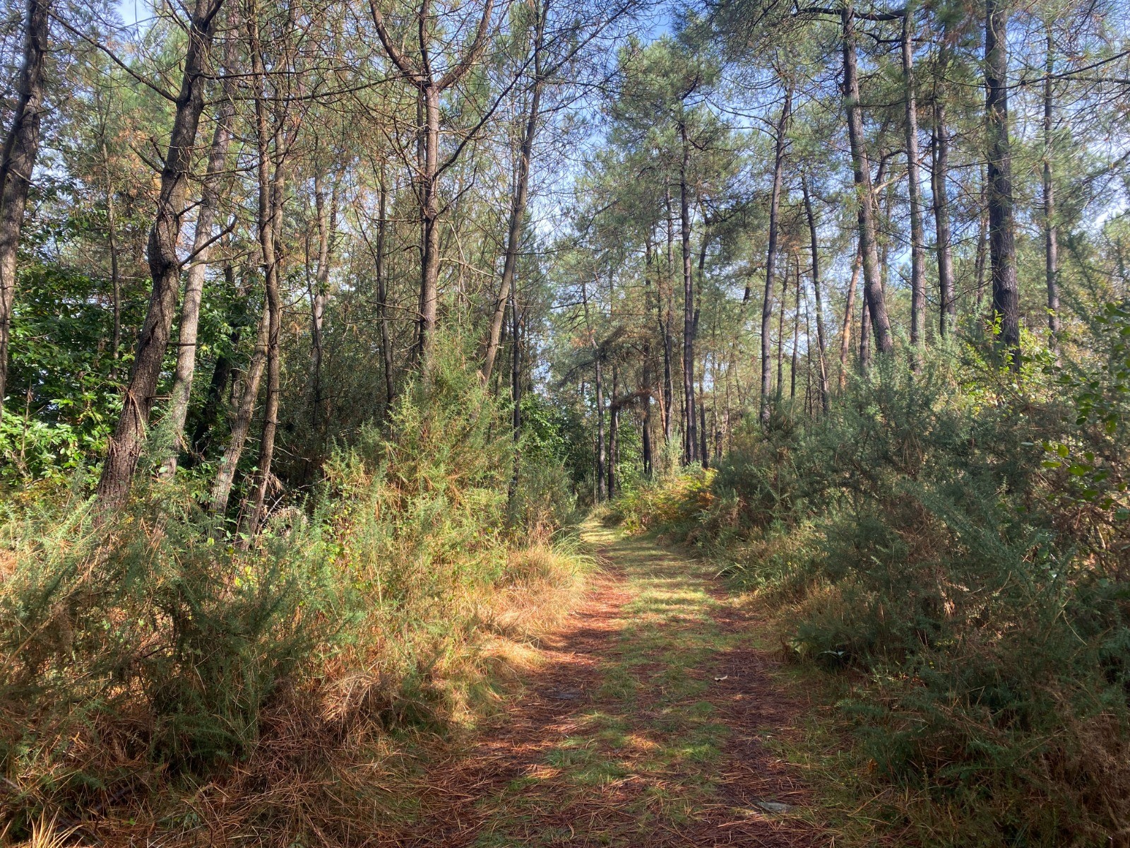 Le circuit emprunte des sentiers à travers des bois de pins, des landes et des chemins de campagne.