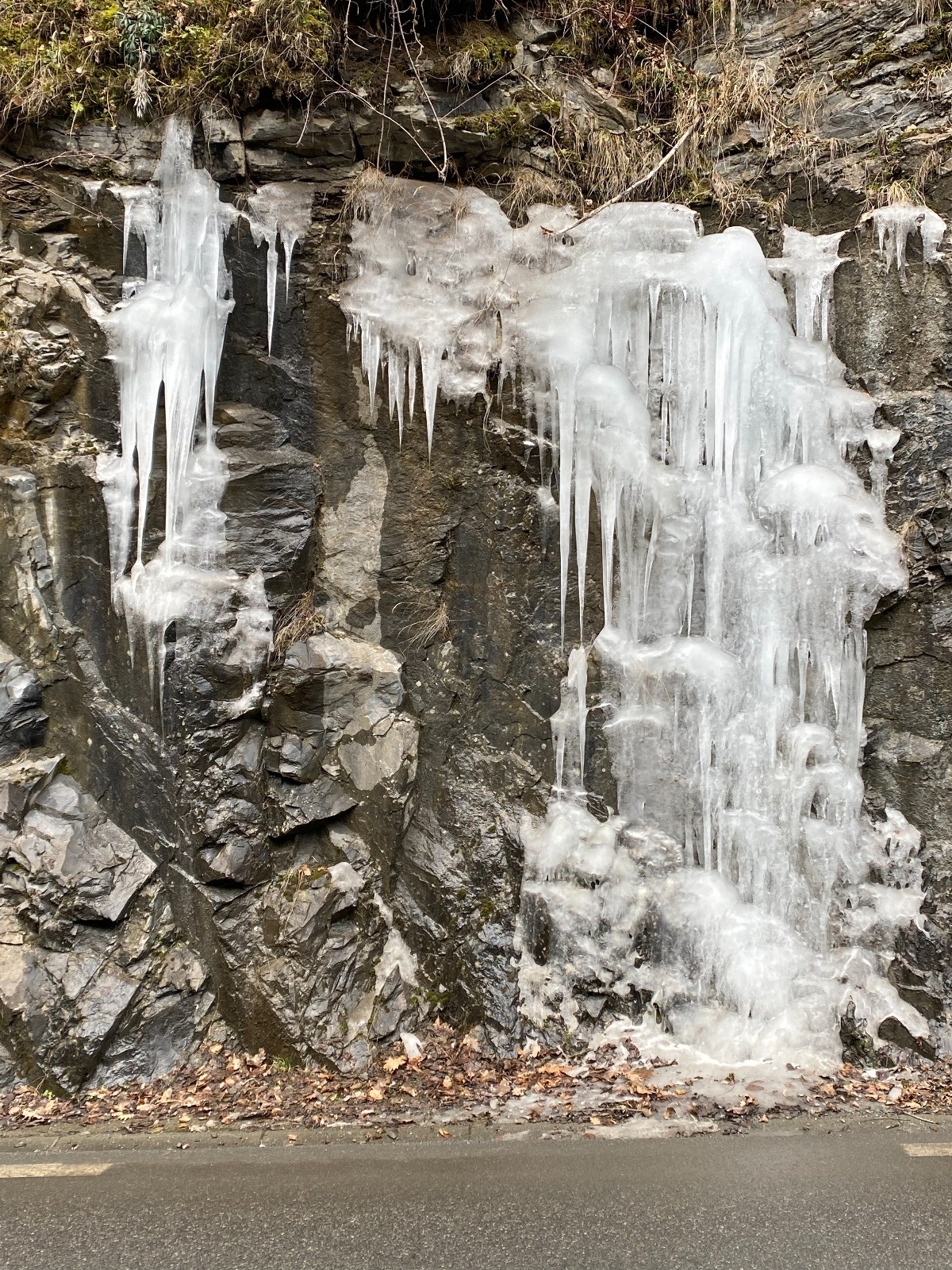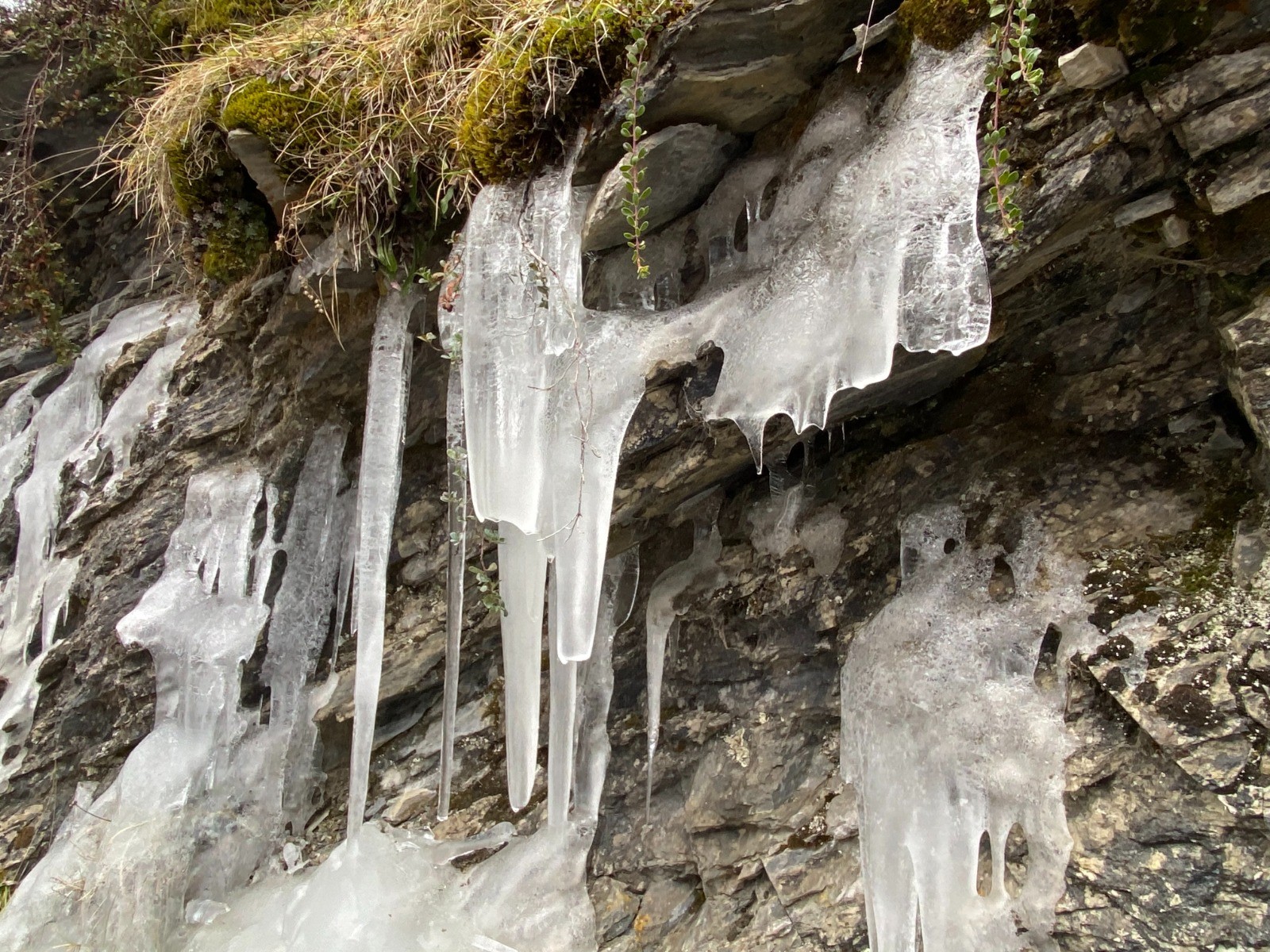 Quelques petits tapis neigeux ont résisté et le froid a créé de belles stalagmites de glace. ( photos no 13 & 15 )