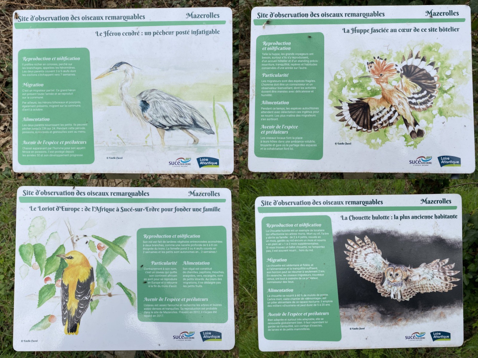 Sur le chemin de halage des panneaux d'information ont été installés : "Site d'observation des oiseaux remarquables" de Mazerolles.