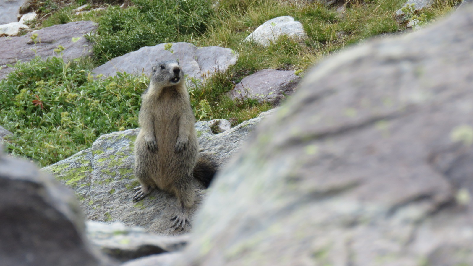 Les plus enhardis chercheront le joli petit lac, peu facile d’accès, au milieu du vallon, mais qui se trouve… tout à gauche. On passera à droite d’un second joli petit lac un peu plus bas et beaucoup plus facile à voir et approcher.