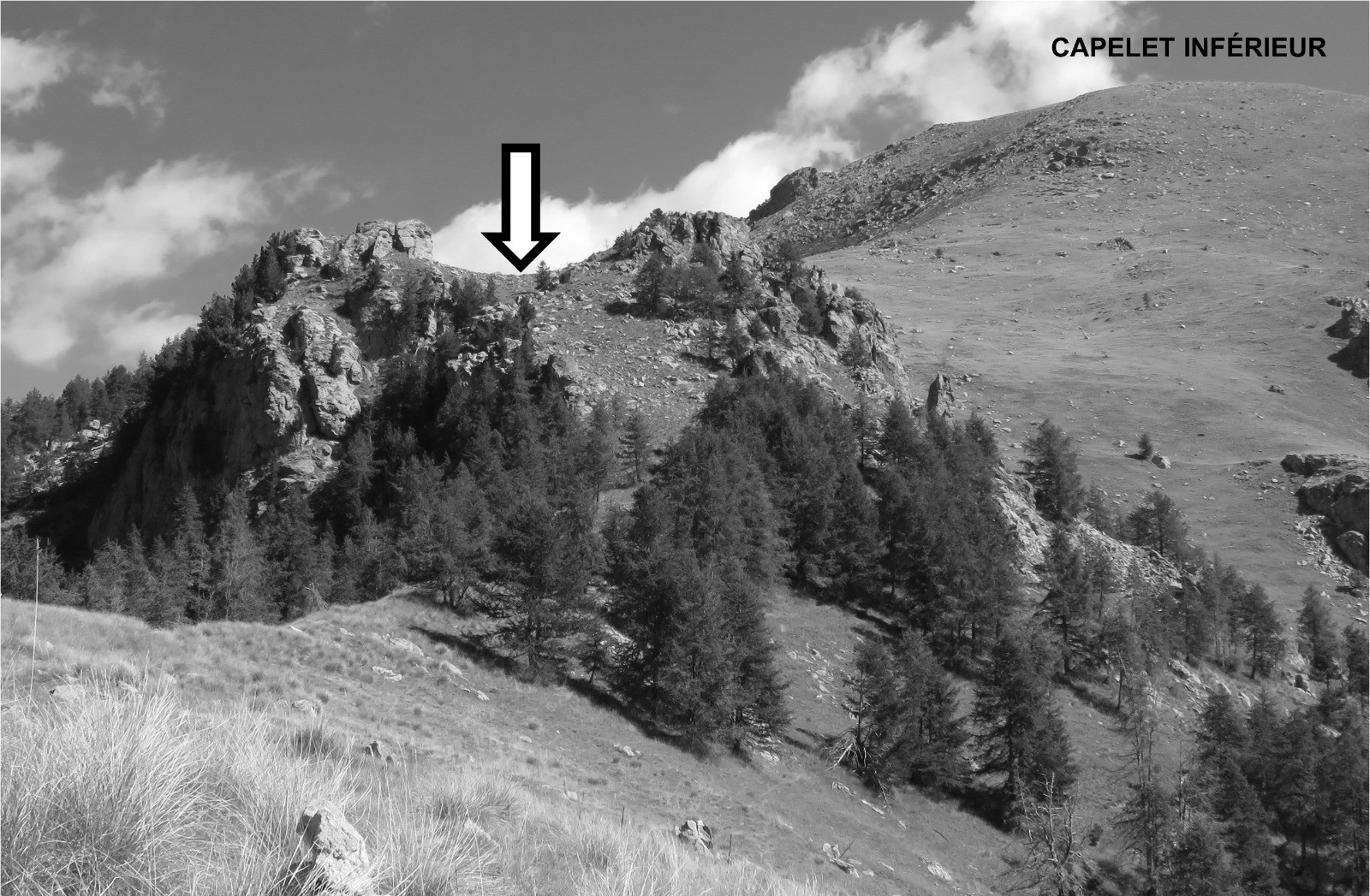 Départ du Parking de la Vacherie de la Gordolasque. Prendre à droite, direction Crête des Terres Rouges. A quelques centaines de mètres, c’est tout droit : ne pas prendre les autres sentiers sur la droite ! Monter jusqu’à la crête d’où on aperçoit sur la droite le Relai téléphonique de Tréminil. Compter 1h00 environ.Monter à gauche dans la forêt en se tenant à droite de la crête la plupart du temps et suivre les petits sentiers, toujours proches de la crête, constamment en direction du Capelet Inférieur quasiment toujours en face. Sur sa droite, se trouve le Capelet Supérieur avec ses pylônes.