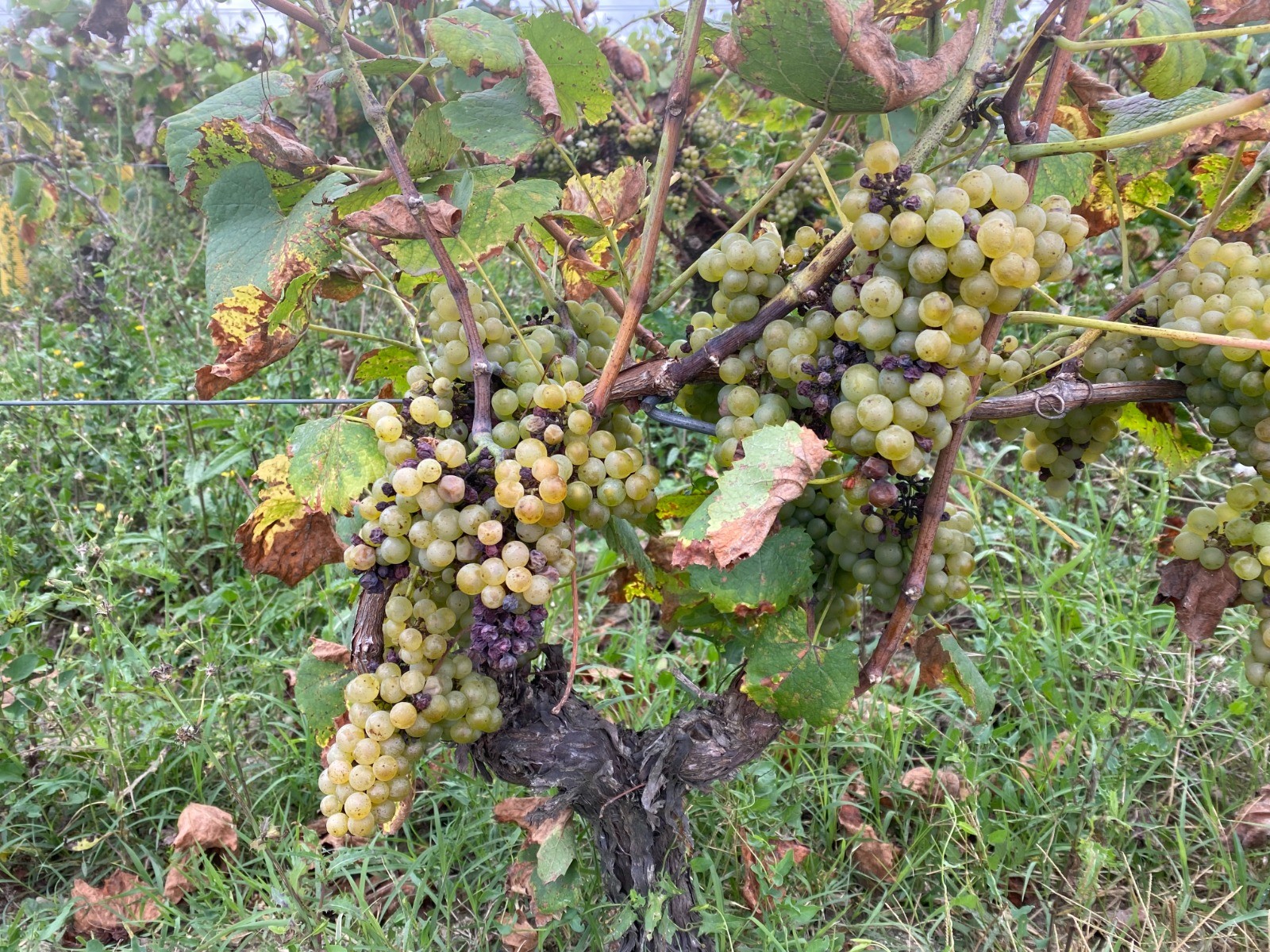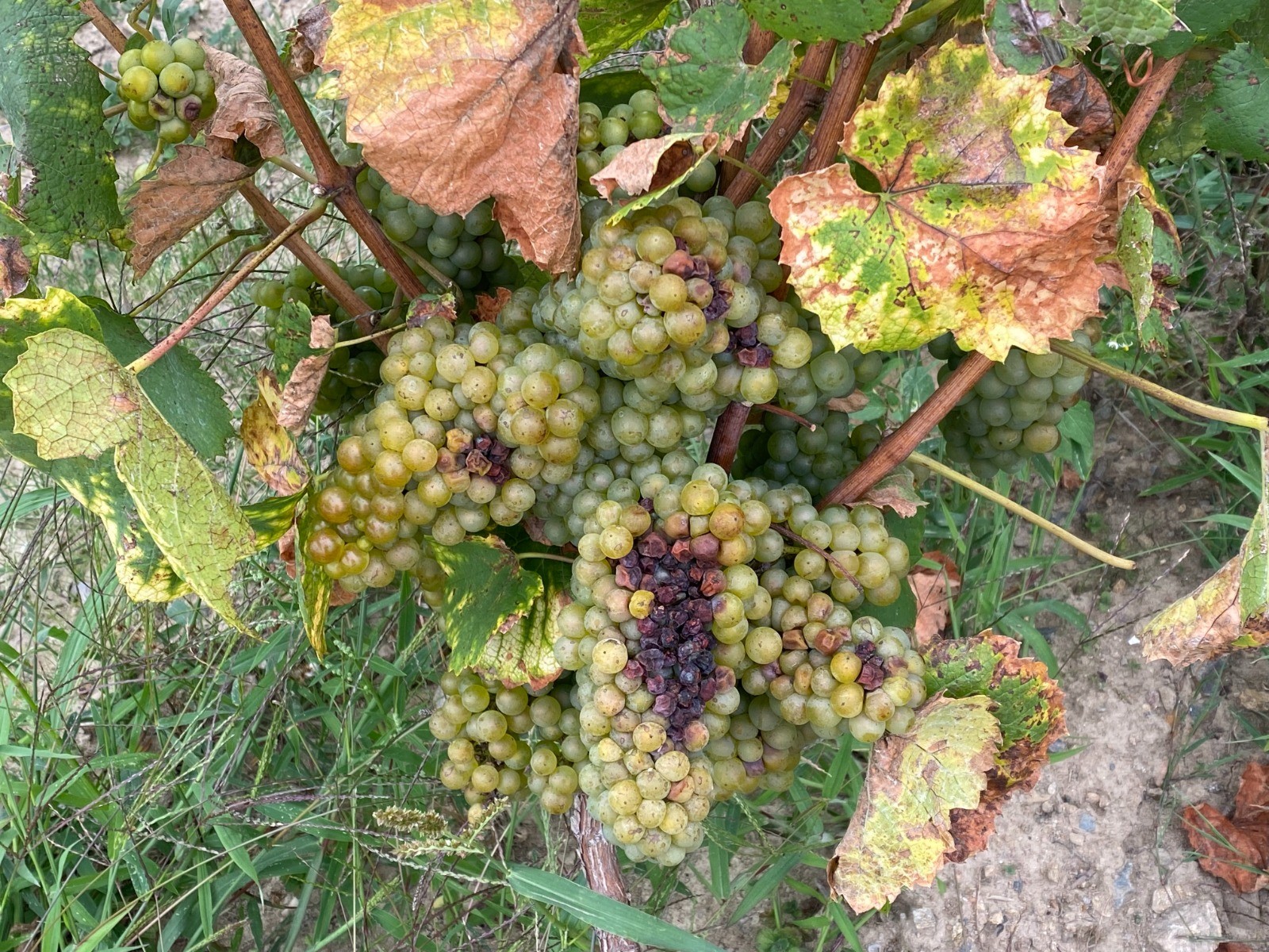 Le raisin est abondant mais la sécheresse est passée par là ( photo no 2 ) et du coup la récolte ne sera pas celle escomptée et la qualité va également en subir les conséquences.