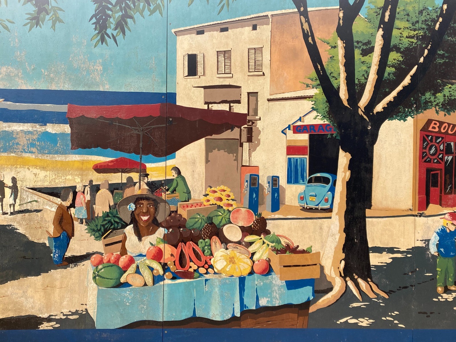 Vers le quatrième kilomètre nous apercevons un château d'eau gigantesque tout en couleur.