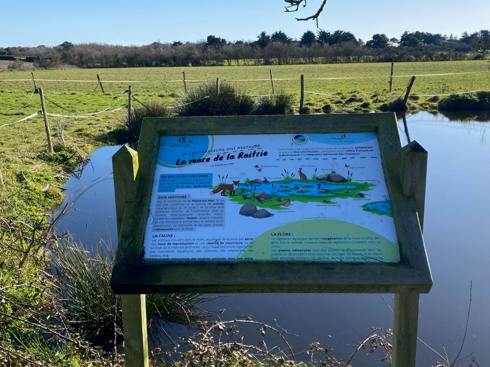 Kilomètre 5 : "Mare de la Raitrie" ( photo no 10 ) restaurée avec un panneau pédagogique sur l'utilité des mares.
