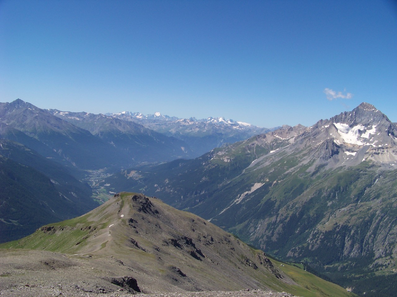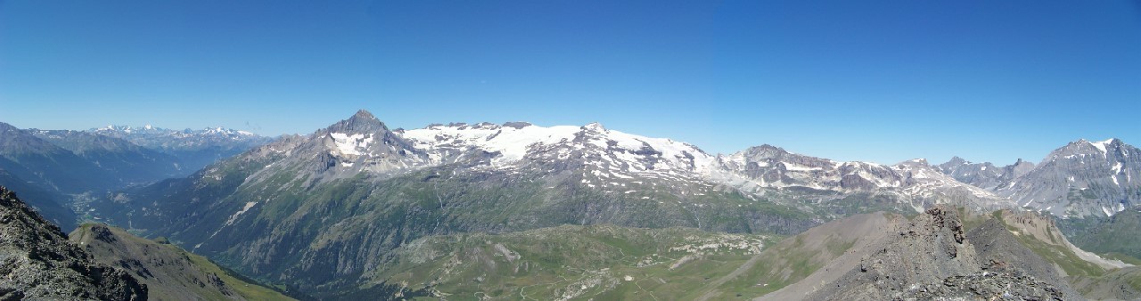 Le panorama sommital est un 360° assez unique!Le départ du parking de Bellecombe permet une rando raisonnable en dénivelé et distance, même si les pentes sommitales du vallon du coin sont très raides (si neige piolet crampons utiles) et lors de la descente du col du petit vallon.