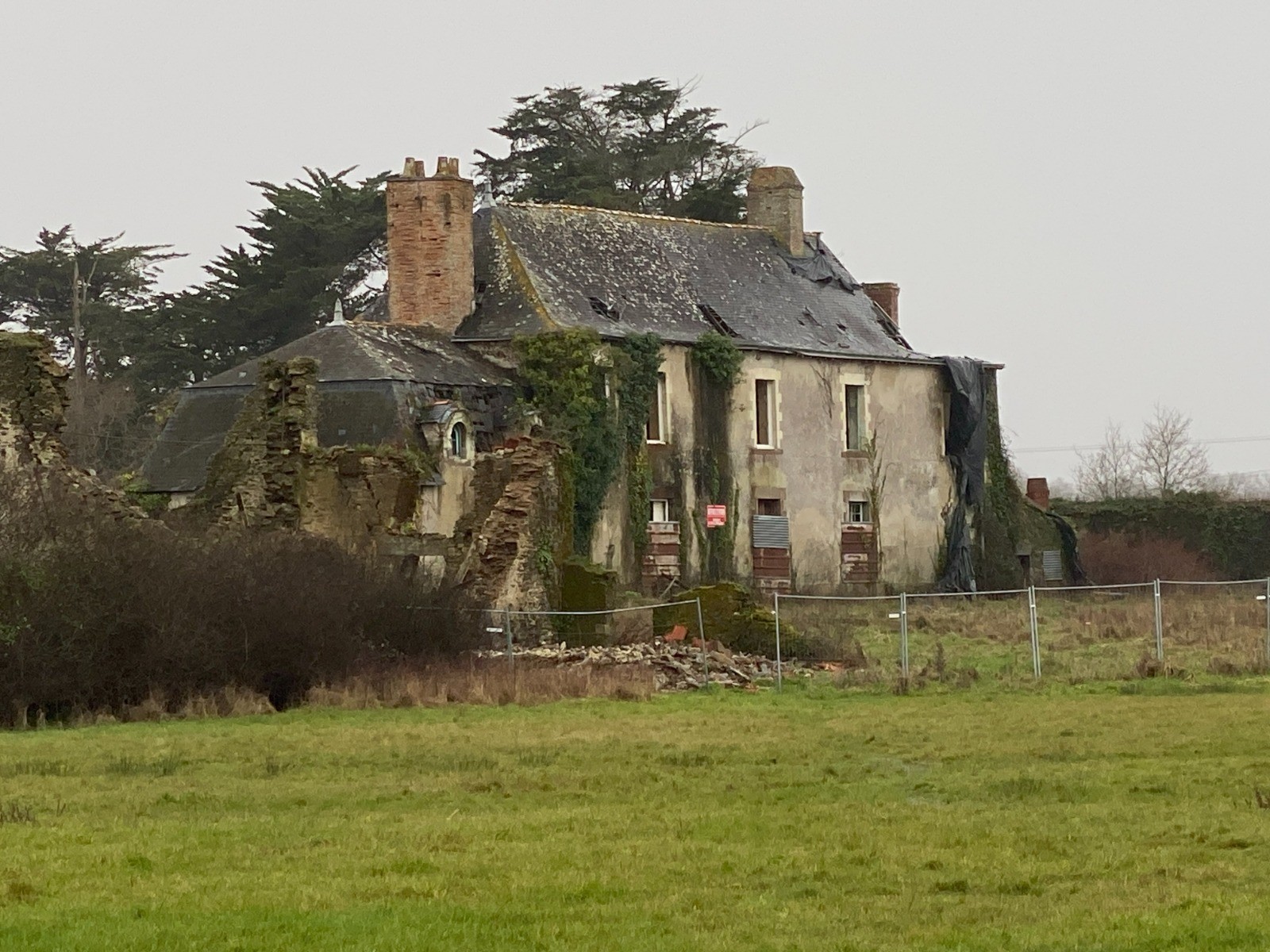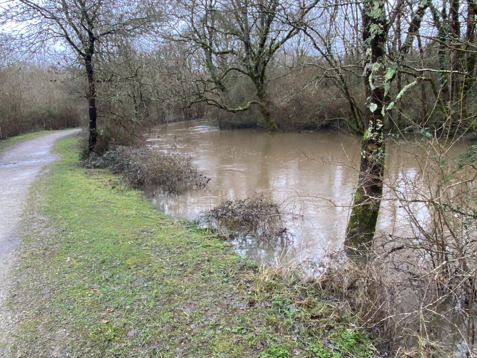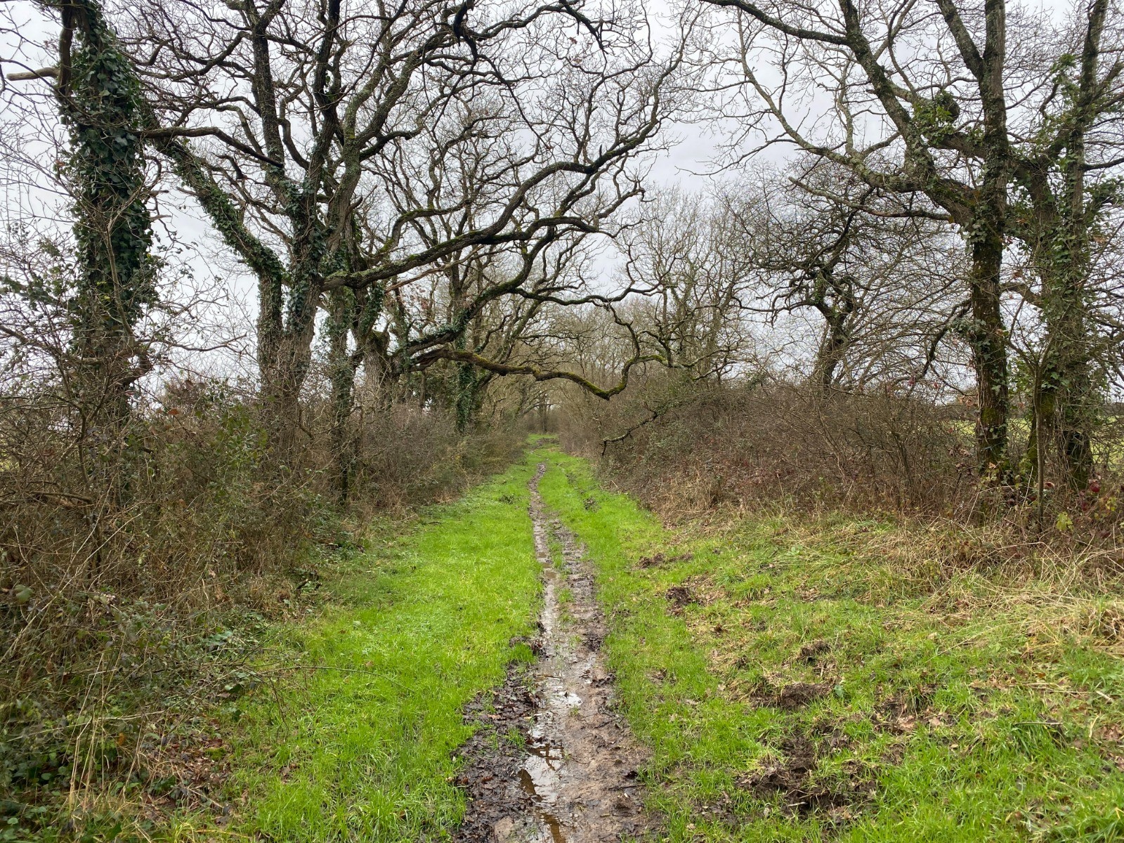 Un gros kilomètre et nous voilà à La Bourrelière, un chemin bien boueux prend le relais du macadam.