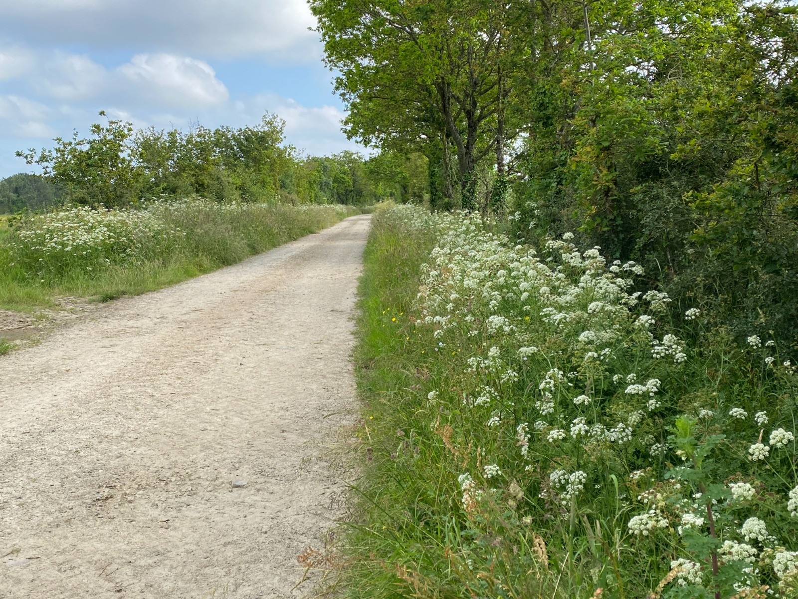 Alternance de chemins herbeux ( fauchés tout récemment ), larges chemins agricoles ( photo no 6 ) et du macadam ( 40% environ )