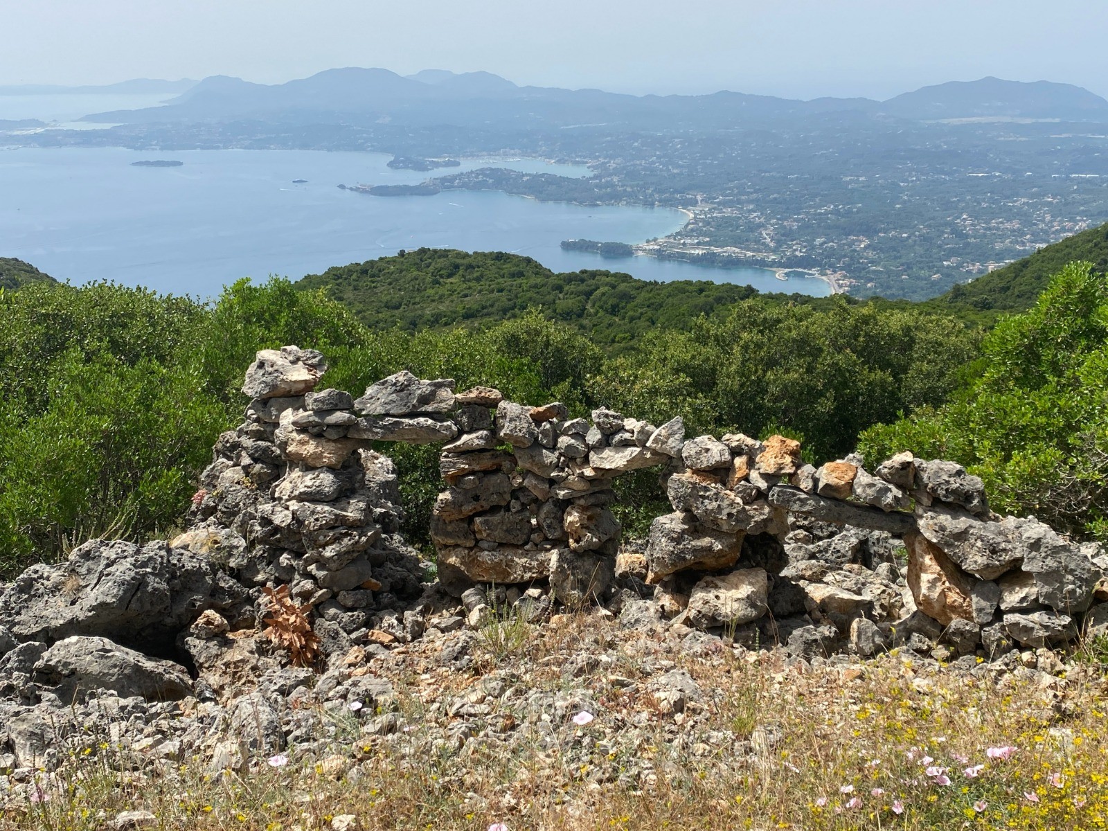 L'itinéraire suit le chemin de terre le plus court qui décrit un cercle et atteint le sommet du Pantokratoras.