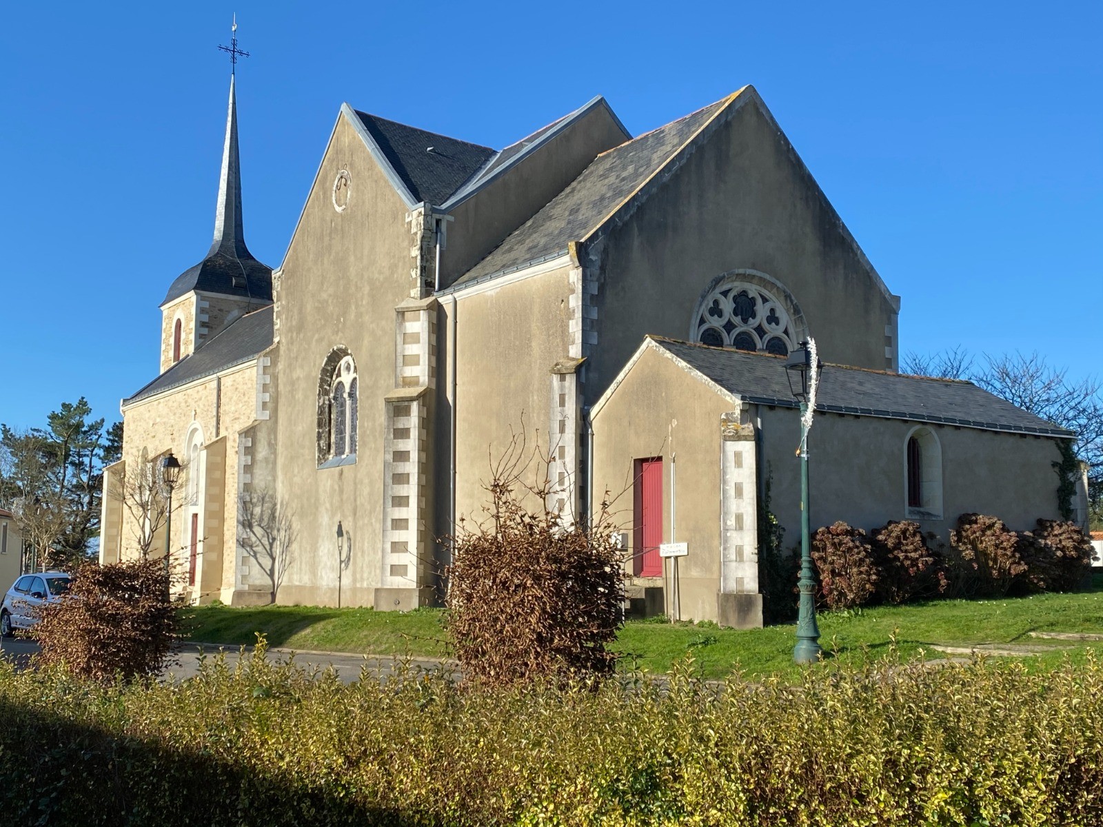 Dans le centre bourg de Cheix-en-Retz, garez-vous près de l'imposante église Saint-Martin, construite en 1857 par l'architecte Chenantais.