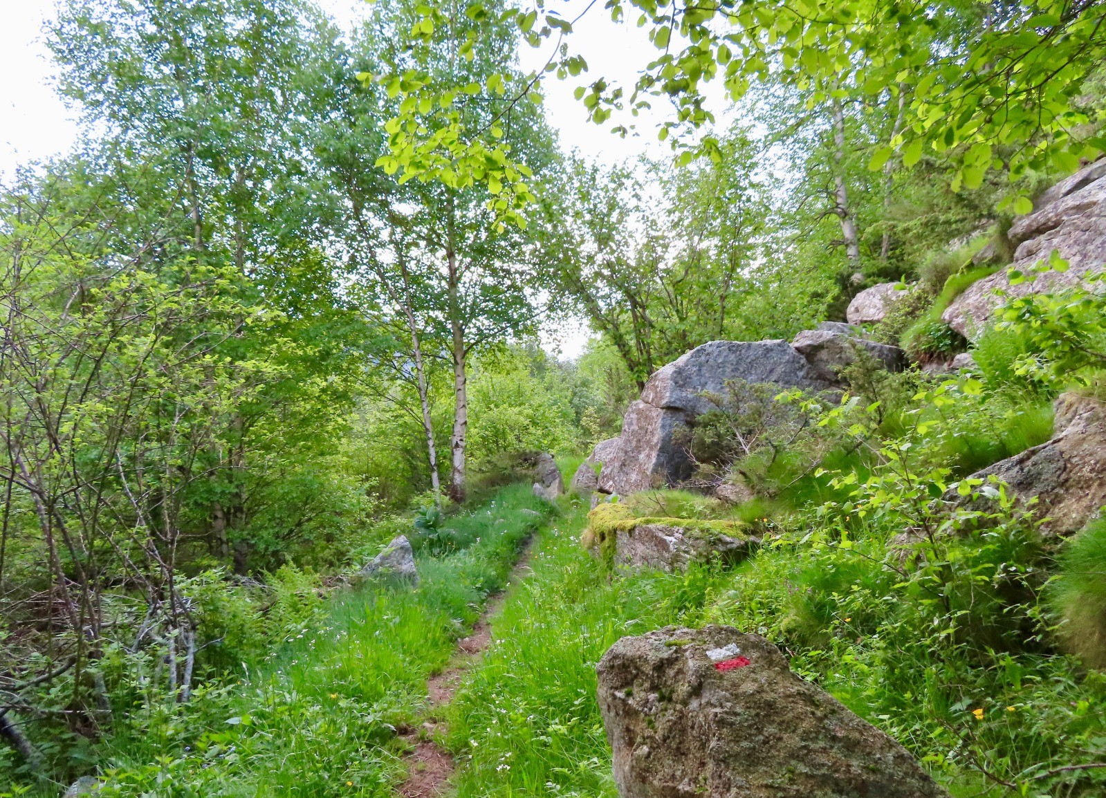 Après une belle soirée à la table des randonneurs , nous quittons le refuge à 9h00 sous une couverture nuageuse couvrant l'horizon.