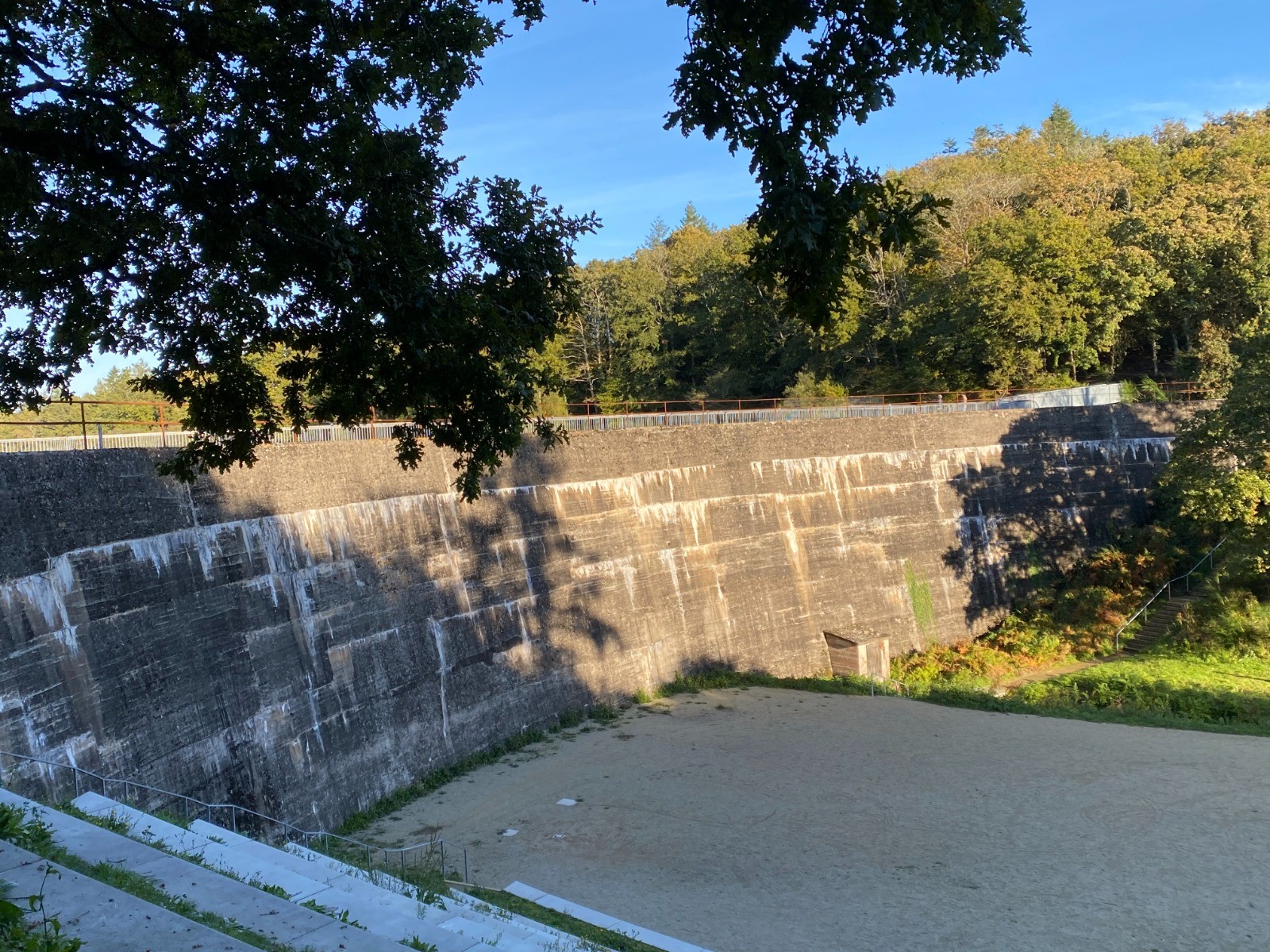 Au pied du barrage ( photo no 18 ) , sur votre gauche en remontant le chemin, vous pourrez admirer l'oeuvre pérenne ( photo no 5 ) "Les Worthies" de Marianne Vitale.