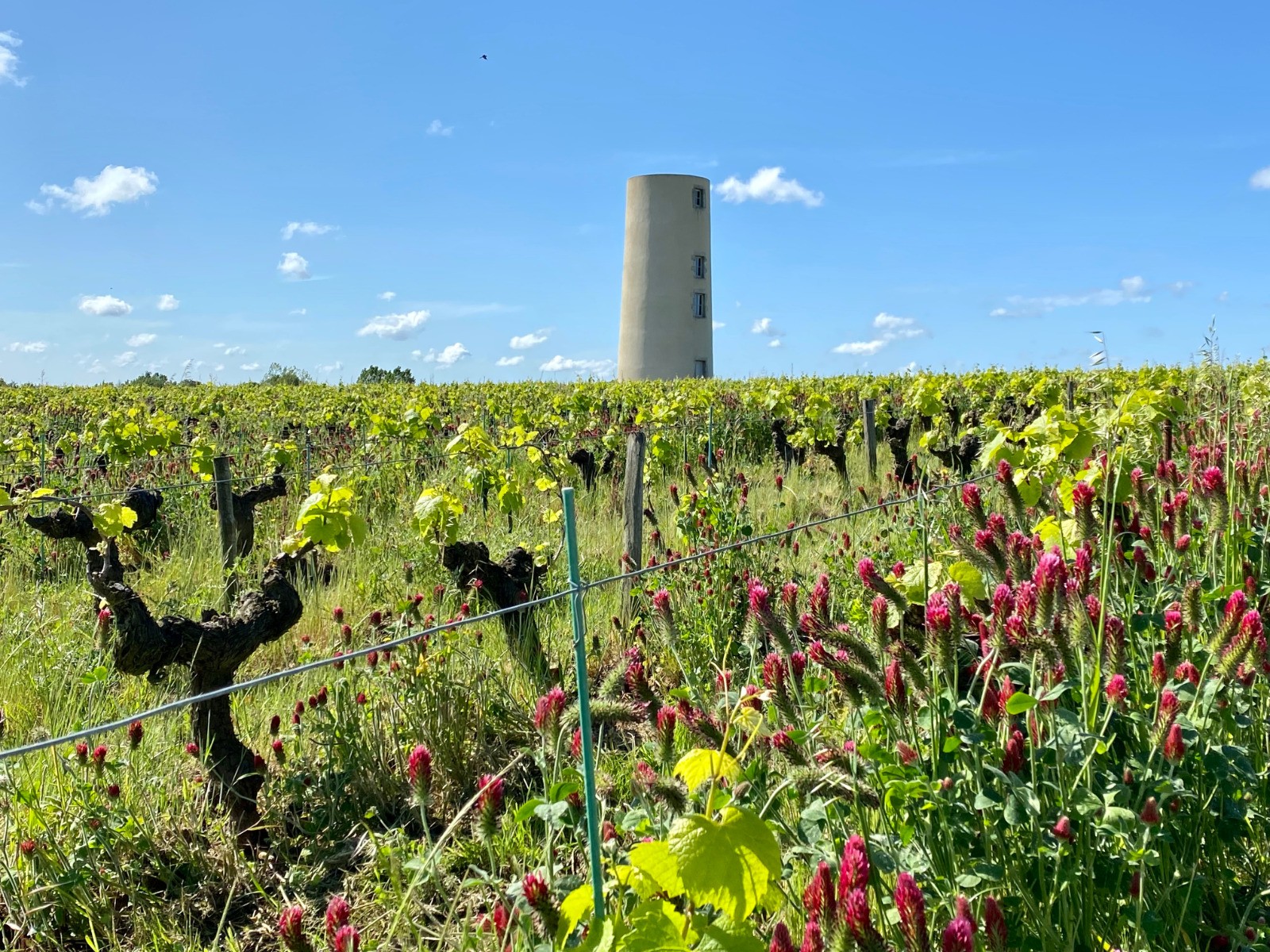 Kilomètre 3, à la sortie du village : une surprenante tour dans les vignes. ( Photo no 1 )