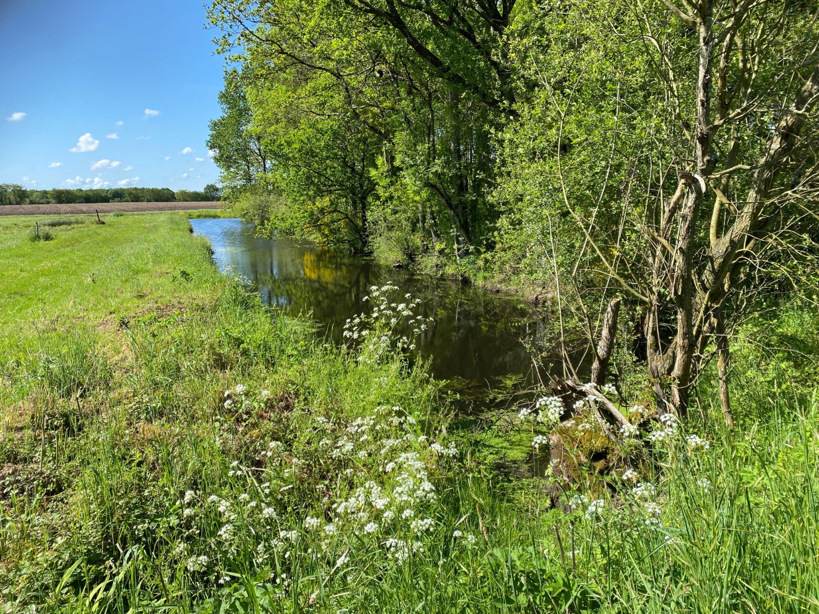 Ensuite nous entrons dans des terres agricoles avec prairies, champs de colza, céréales…
