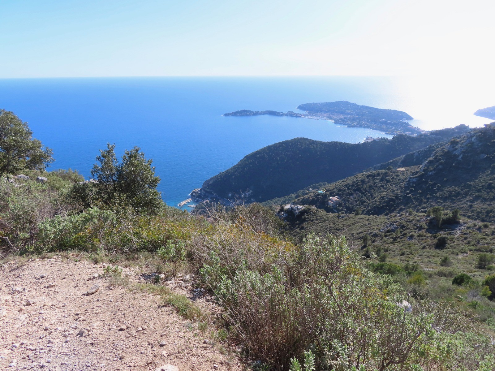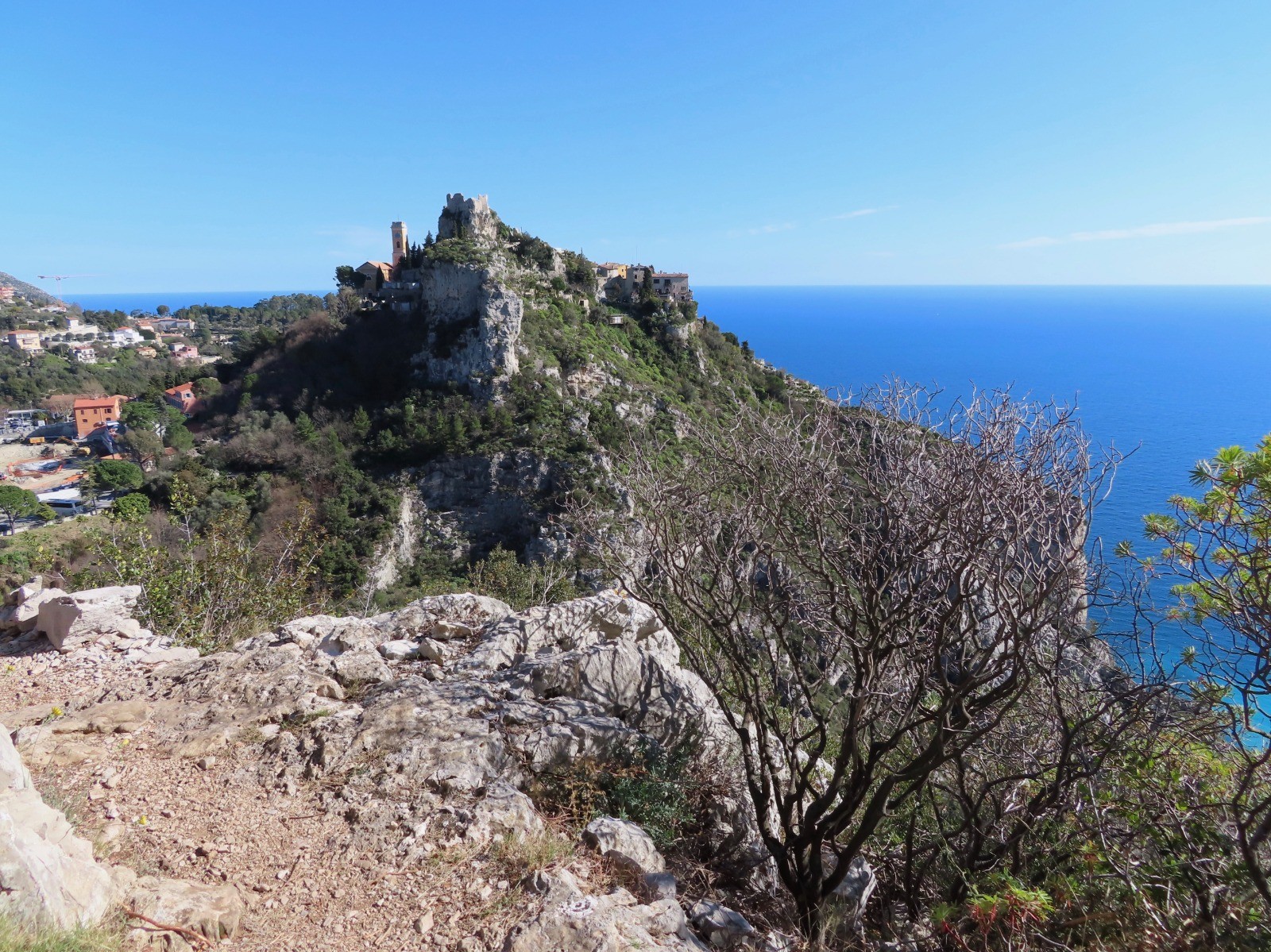 Poursuite de la randonnée à l'ouest vers le Mont Bastide à 566 m d'altitude avec vues panoramiques sur le village perché et la mer.